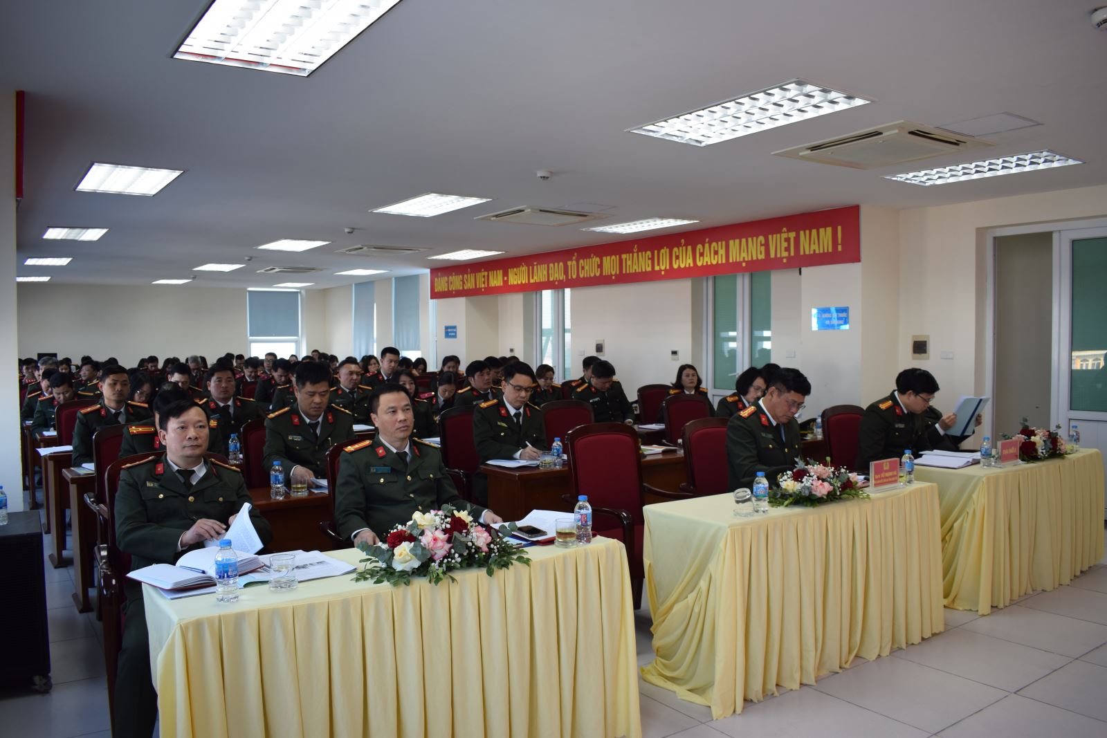 Công tác quản trị, phục vụ được triển khai nền nếp, hiệu quả; bảo đảm tốt công tác đón tiếp khách, phục vụ hội nghị, hội thảo, các lớp đào tạo, tập huấn và sinh hoạt của cán bộ, chiến sĩ, với 105 hội nghị, trên 80.000 suất ăn và 700 lượt khách lưu trú. Công tác quản lý doanh trại, Nhà khách được duy trì thường xuyên; sử dụng điện, nước an toàn, tiết kiệm; kịp thời sửa chữa cơ sở vật chất, bảo đảm vệ sinh môi trường, xây dựng cảnh quan xanh, sạch, đẹp. Trong công tác đầu tư, mua sắm và quản lý tài sản công, Phòng Hậu cần chủ động tham mưu trang cấp, tiếp nhận, mua sắm, sửa chữa trang thiết bị, phương tiện phục vụ yêu cầu công tác, chiến đấu; rà soát, sắp xếp, điều chuyển hàng chục lượt phương tiện chuyên dùng, hàng trăm loại tài sản sau sắp xếp tổ chức bộ máy. Công tác tiếp nhận, kiểm kê vũ khí, công cụ hỗ trợ, phương tiện được thực hiện chặt chẽ, đúng quy định; tăng cường kiểm tra, hướng dẫn quản lý, sử dụng tài sản công, bảo đảm xuất, nhập kho, bảo quản hàng hóa an toàn, đầy đủ, đáp ứng tốt các nhiệm vụ thường xuyên và đột xuất. Tổ chức thực hiện có hiệu quả công tác tài chính, kế toán theo đúng quy định của Nhà nước và của Bộ Công an; phục vụ tốt yêu cầu công tác, chiến đấu và xây dựng lực lượng Công an nhân dân trong tình hình mới.