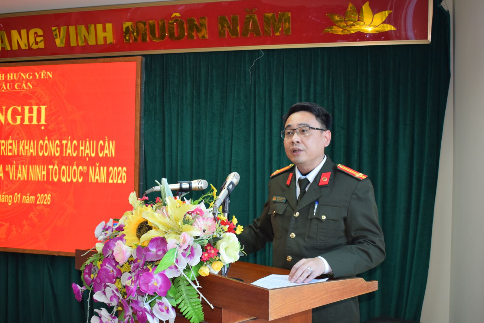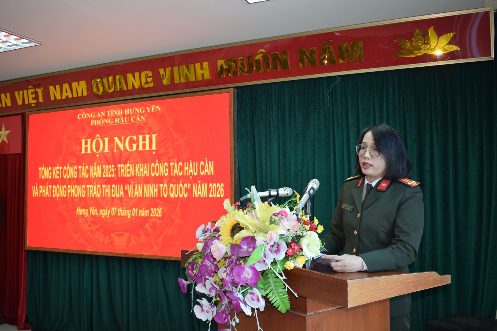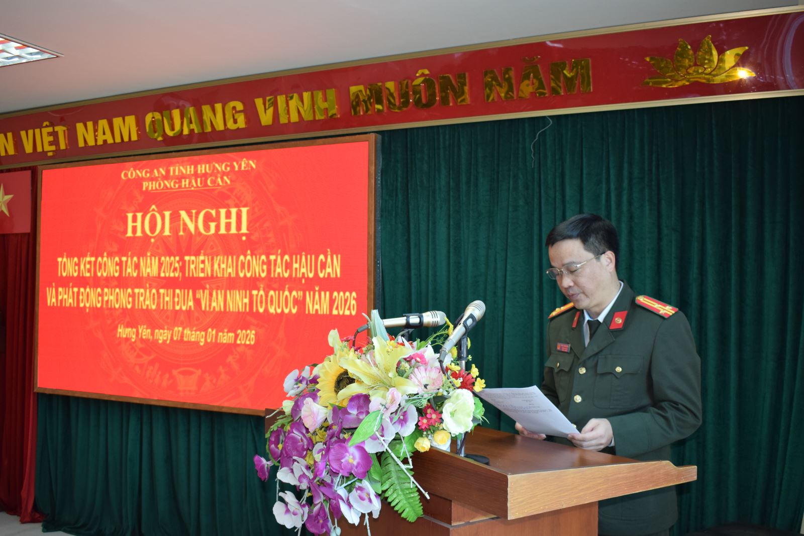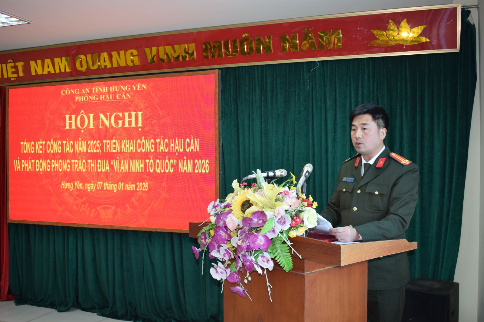 Ngày 07/01/2026, Phòng Hậu cần Công an tỉnh tổ chức Hội nghị tổng kết công tác năm 2025, triển khai chương trình công tác năm 2026. Dự và chỉ đạo Hội nghị có đồng chí Đại tá Vũ Mạnh Hà, Phó Giám đốc Công an tỉnh; cùng toàn thể lãnh đạo, cán bộ, chiến sĩ Phòng Hậu cần.