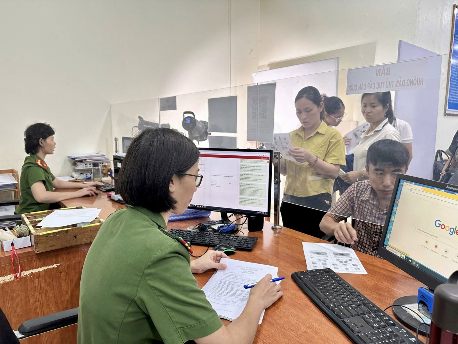Cán bộ hội viên Phòng Cảnh sát QLHC về TTXH thực hiện nhiệm vụ cấp căn cước cho công dân