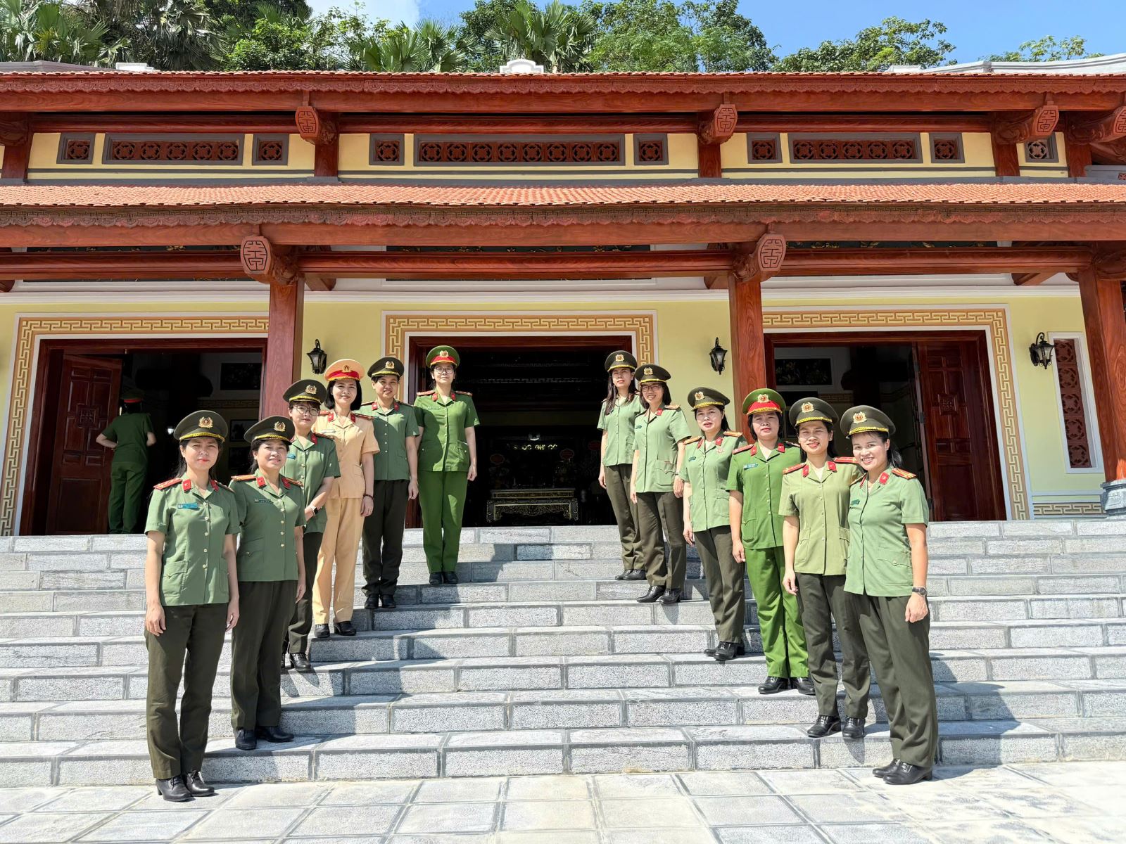Cán bộ, hội viên phụ nữ Công an Hưng Yên chụp ảnh lưu niệm trong Chương trình sinh hoạt chính trị trên mảnh đất cách mạng An toàn khu (ATK) Định Hóa, tỉnh Thái Nguyên.
