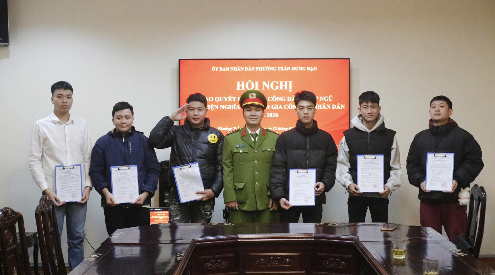 Thực hiện các bước tuyển chọn, xét duyệt chặt chẽ, đúng quy định, năm 2026 phường Trần Hưng Đạo có 6 công dân tình nguyện viết đơn, đủ điều kiện, tiêu chuẩn và sẵn sàng lên đường thực hiện nghĩa vụ tham gia Công an nhân dân. Đây là những thanh niên có phẩm chất chính trị, đạo đức tốt, sức khỏe đảm bảo, thể hiện tinh thần trách nhiệm của tuổi trẻ đối với nhiệm vụ bảo vệ an ninh Tổ quốc.