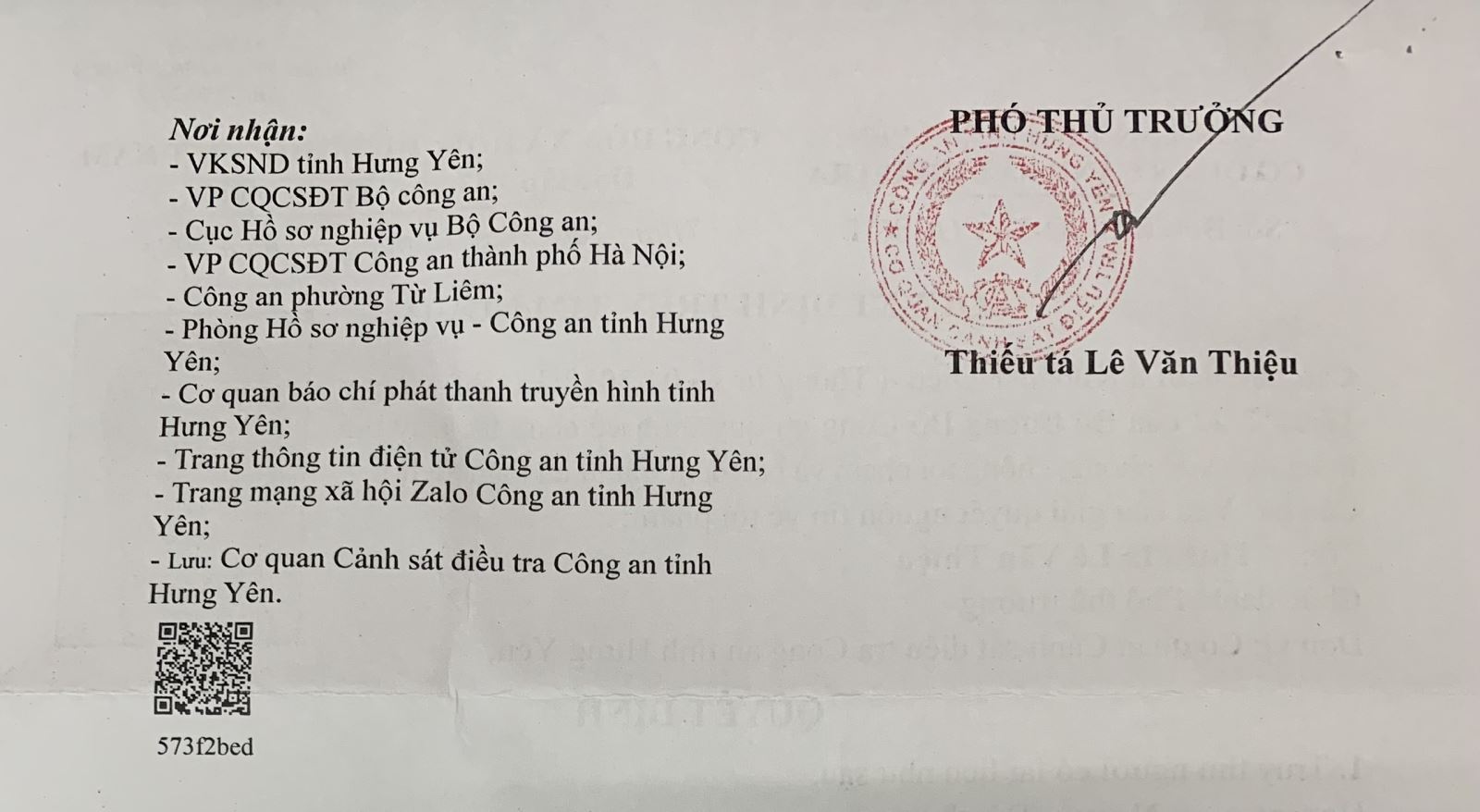 Truy nã: Hoàng Văn Điệp, SN 1990, trú tại thôn Minh Lý, xã Hoàng Hoa Thám, huyện Ân Thi, tỉnh Hưng Yên