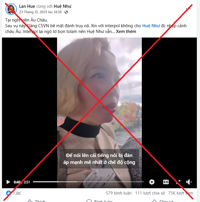 Một trong những đối tượng phản động cần lên án mạnh mẽ đó là đối tượng Đặng Thị Huệ, sinh năm 1981, hộ khẩu thường trú xã Thư Vũ, tỉnh Hưng Yên, đối tượng đã bị Cơ quan An ninh điều tra-Công an tỉnh Hưng Yên Khởi tố về tội “Làm, tàng trữ, phát tán hoặc tuyên truyền thông tin, tài liệu nhằm chống Nhà nước Cộng hoà xã hội chủ nghĩa Việt Nam”. Đối tượng đã tạo lập, điều hành nhiều tài khoản mạng xã hội như: Đặng Huệ, Lan Hue, Huệ Như… để đăng tải, phát tán các thông tin bịa đặt, xuyên tạc chủ trương, đường lối, chính sách của Đảng, Nhà nước, bôi nhọ các đồng chí lãnh đạo, đặc biệt trong giai đoạn tổ chức Đại hội đại biểu toàn quốc lần thứ XIV của Đảng, kích động người dân tham gia các hoạt động biểu tình chống phá chế độ của đất nước ta, đặc biệt đối tượng lợi dụng chiêu bài “tự do dân chủ, tự do ngôn luận” để che đậy hoạt động xâm hại an ninh quốc gia, trật tự an toàn xã hội, kích động, chia rẽ khối đại đoàn kết toàn dân tộc.
