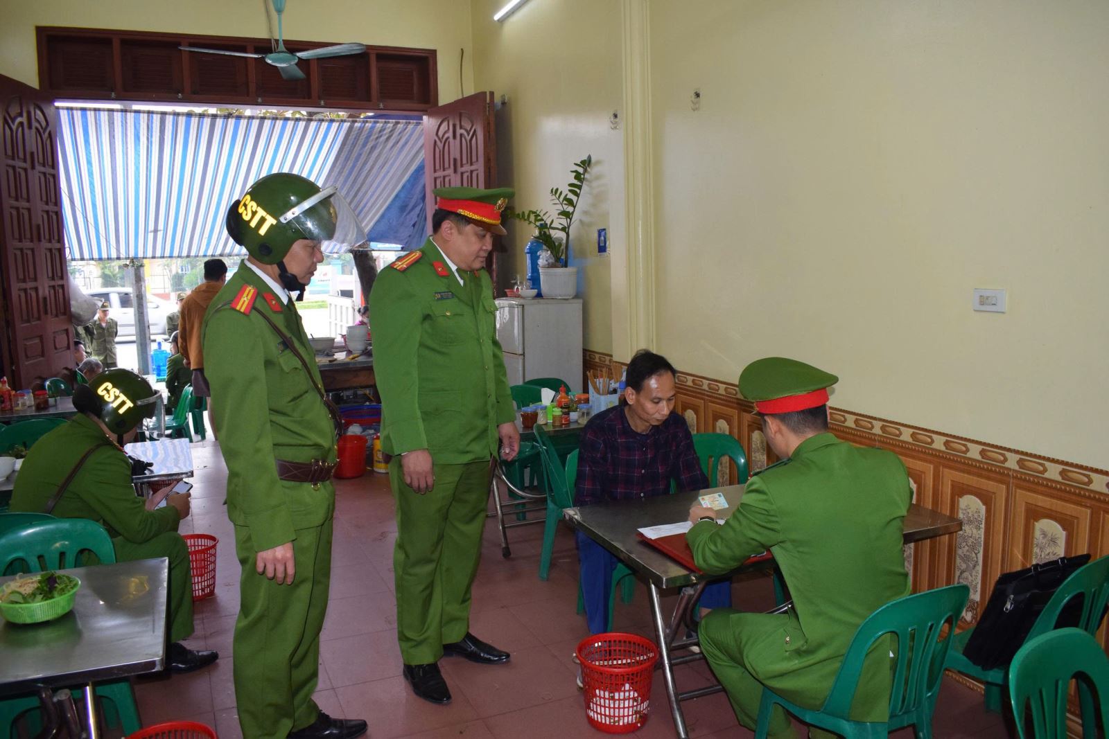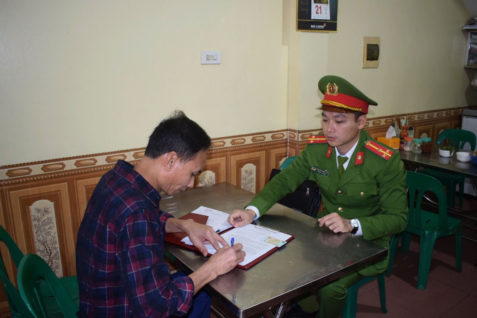 Phòng Cảnh sát quản lý hành chính về trật tự xã hội phối hợp với Công an các phường, xã tổ chức cho các hộ kinh doanh ký cam kết không lấn chiếm lòng đường, vỉa hè