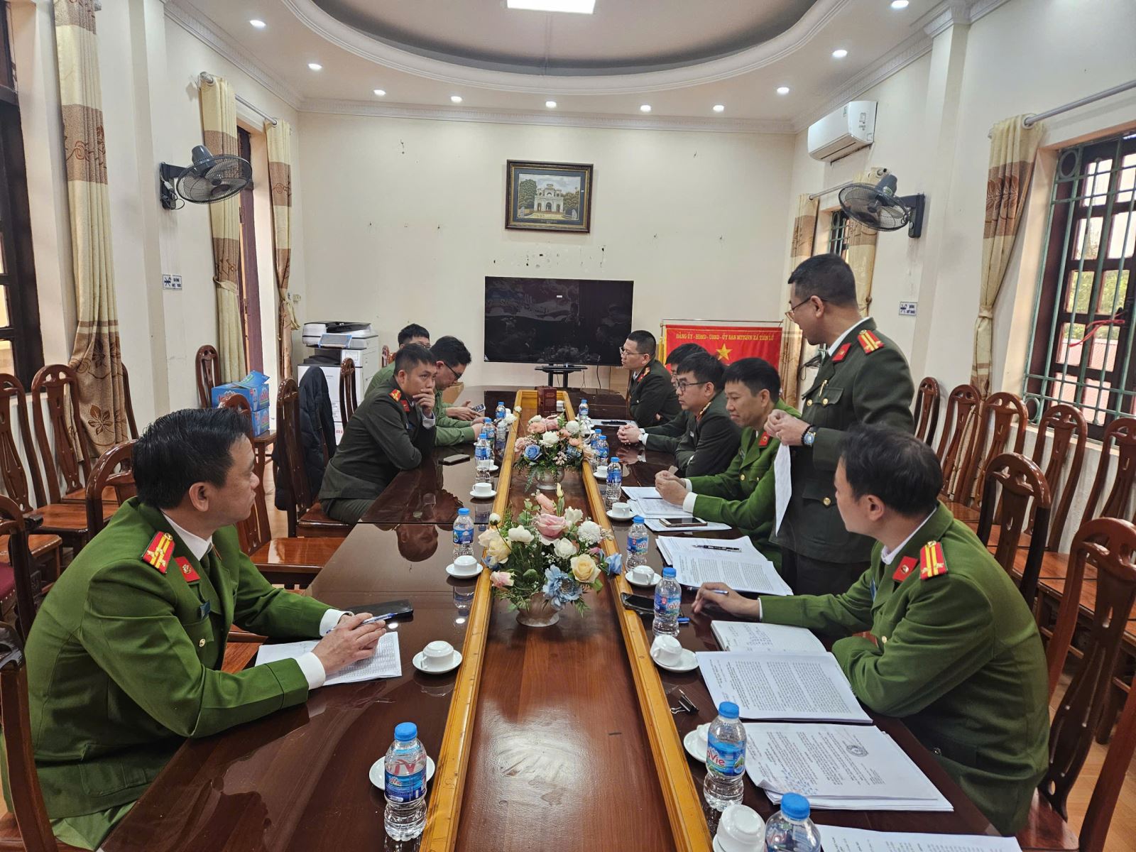 Công an cấp xã họp triển khai nhiệm vụ phối hợp đảm bảo ANTT với cán bộ chiến sỹ được tăng cường về cơ sở