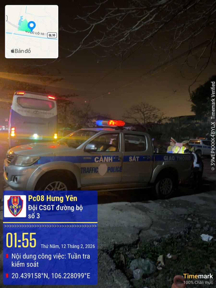 Thông qua công tác tuần tra, kiểm soát, bảo đảm trật tự an toàn giao thông trên tuyến hồi 00 giờ 05 phút ngày 12/02/2026, tại khu vực Quốc lộ 10 thuộc địa bàn xã Tân Thuận, Tổ công tác của Đội Cảnh sát giao thông đường bộ số 3 phát hiện, dừng kiểm tra xe ô tô chở khách giường nằm loại 45 chỗ, biển kiểm soát 37H-079.xx do N.C.H điều khiển. Qua kiểm tra, lực lượng chức năng xác định phương tiện chở quá 8 người so với số ghế theo quy định; đồng thời lái xe không có lệnh vận chuyển theo quy định. Tổ công tác đã lập biên bản vi phạm hành chính đối với lái xe N.C.H về hành vi chở quá số người quy định. Việc xử lý nghiêm minh thể hiện tinh thần kiên quyết của lực lượng Cảnh sát giao thông trong công tác bảo đảm trật tự an toàn giao thông, nhất là đối với hoạt động vận tải hành khách trong dịp cao điểm Tết Nguyên đán, góp phần phòng ngừa, răn đe chung.