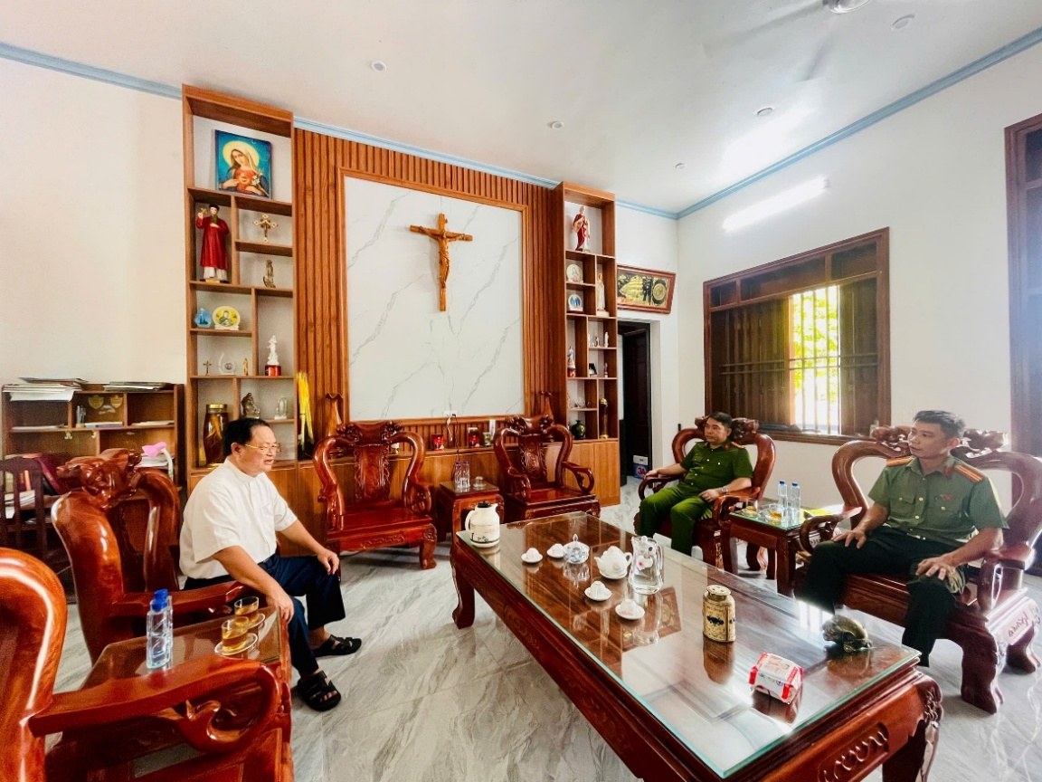Công an xã Ngọc Lâm gặp gỡ, trao đổi với Linh mục Đinh Văn Hùng - Giáo xứ Quỳnh Lang.