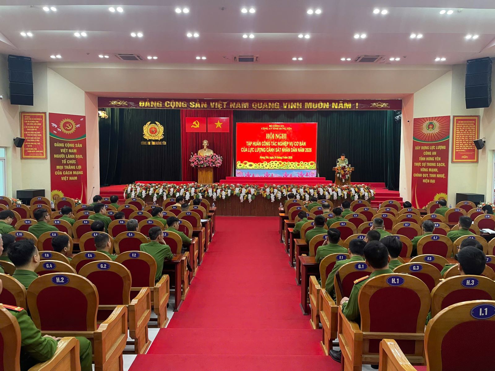Ngày 24/3/2026, Công an tỉnh Hưng Yên tổ chức Hội nghị tập huấn công tác nghiệp vụ cơ bản của lực lượng Cảnh sát nhân dân. Dự hội nghị có các đồng chí: Đại tá Cao Minh Tuấn, Phó Giám đốc, Thủ trưởng Cơ quan Cảnh sát điều tra Công an tỉnh; Đại tá Vũ Trung Thành, Phó Giám đốc Công an tỉnh; đại diện lãnh đạo, chỉ huy một số phòng nghiệp vụ Công an tỉnh; đại diện Công an xã, phường, đồn Công an phụ trách công tác phòng chống tội phạm.
