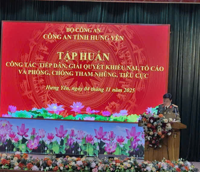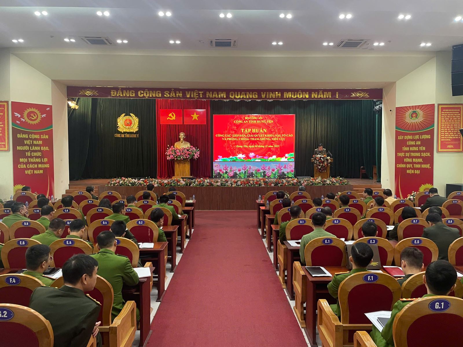 Ngày 04/11/2025, Công an tỉnh Hưng Yên tổ chức Hội nghị tập huấn công tác tiếp công dân, giải quyết khiếu nại, tố cáo và phòng, chống tham nhũng, tiêu cực trong Công an tỉnh năm 2025.