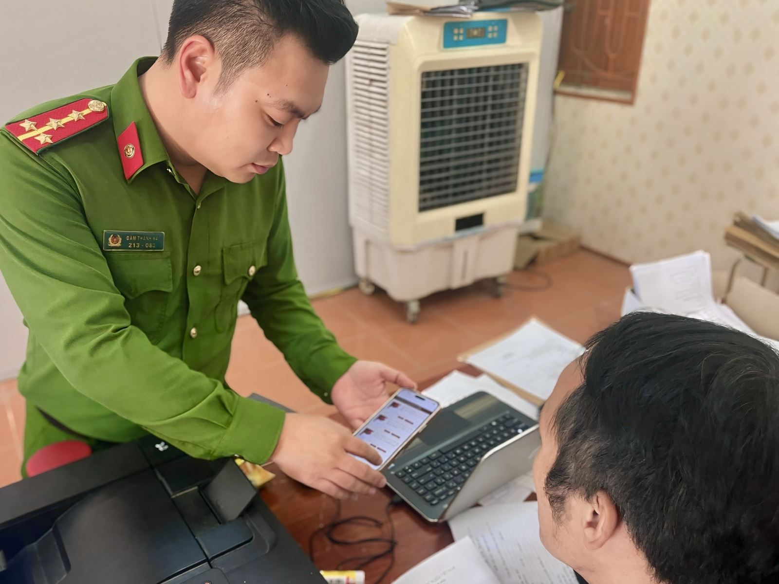 Trung tá Phạm Tuấn Dương, Trưởng Công an xã Việt Yên biểu dương và tiếp nhận đơn của em Đỗ Việt Hòa