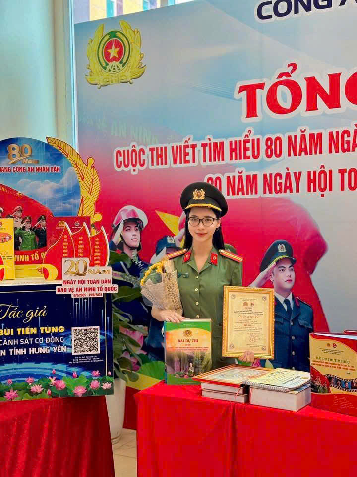 Không chỉ hoàn thành xuất sắc nhiệm vụ chuyên môn, Thiếu tá Bùi Thị Ngọc Mai còn là gương mặt năng động, sáng tạo trong các hoạt động văn hóa, nghệ thuật của lực lượng. Năm 2025, đồng chí được vinh danh là “Diễn viên xuất sắc, triển vọng tài năng tham gia trong các thể loại nghệ thuật” tại Hội diễn Nghệ thuật quần chúng Công an nhân dân lần thứ XIII - khu vực IV. Với sự tự tin, duyên dáng và tinh thần trách nhiệm trong từng tiết mục, đồng chí đã góp phần lan tỏa hình ảnh đẹp của người chiến sĩ Công an nhân dân gần gũi, nhân văn trong lòng Nhân dân. Bên cạnh đó, đồng chí còn đạt Giải A Cuộc thi Ảnh “Duyên dáng phụ nữ Công an nhân dân năm 2025” do Bộ Công an tổ chức và vinh dự được Bộ trưởng Bộ Công an tặng Bằng khen; Giải Ba Cuộc thi tìm hiểu 80 năm Ngày truyền thống lực lượng Công an nhân dân (19/8/1945-19/08/2025), 20 năm Ngày hội Toàn dân bảo vệ an ninh Tổ quốc (19/8/2005-19/08/2025); đồng thời đạt giải Nhất cuộc thi Tìm hiểu 80 năm Ngày truyền thống lực lượng Tham mưu Công an nhân dân do Công an tỉnh Hưng Yên tổ chức. Những thành tích này không chỉ thể hiện năng lực, sự sáng tạo mà còn cho thấy tình cảm, niềm tự hào sâu sắc của đồng chí đối với truyền thống vẻ vang của lực lượng Công an nhân dân.