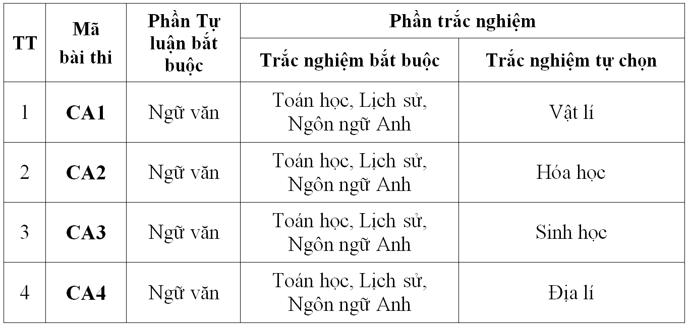 - Thí sinh chọn 01 trong 04 mã bài thi để dự thi