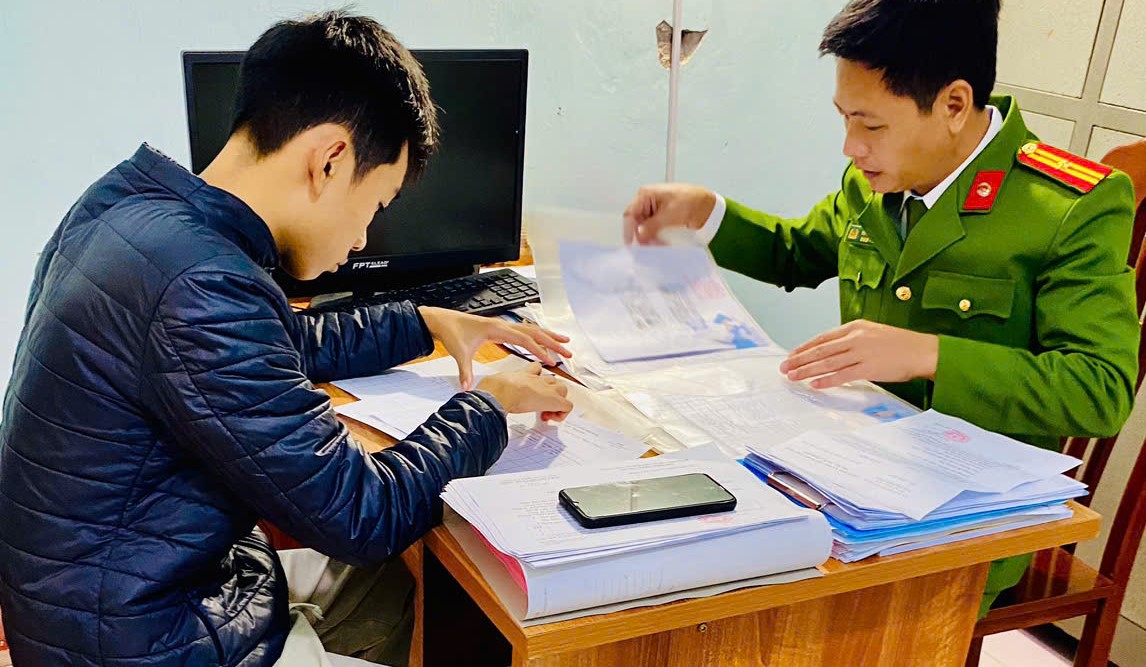 Thượng úy Đỗ Văn Việt hướng dẫn nghiệp vụ cho cán bộ trong đội