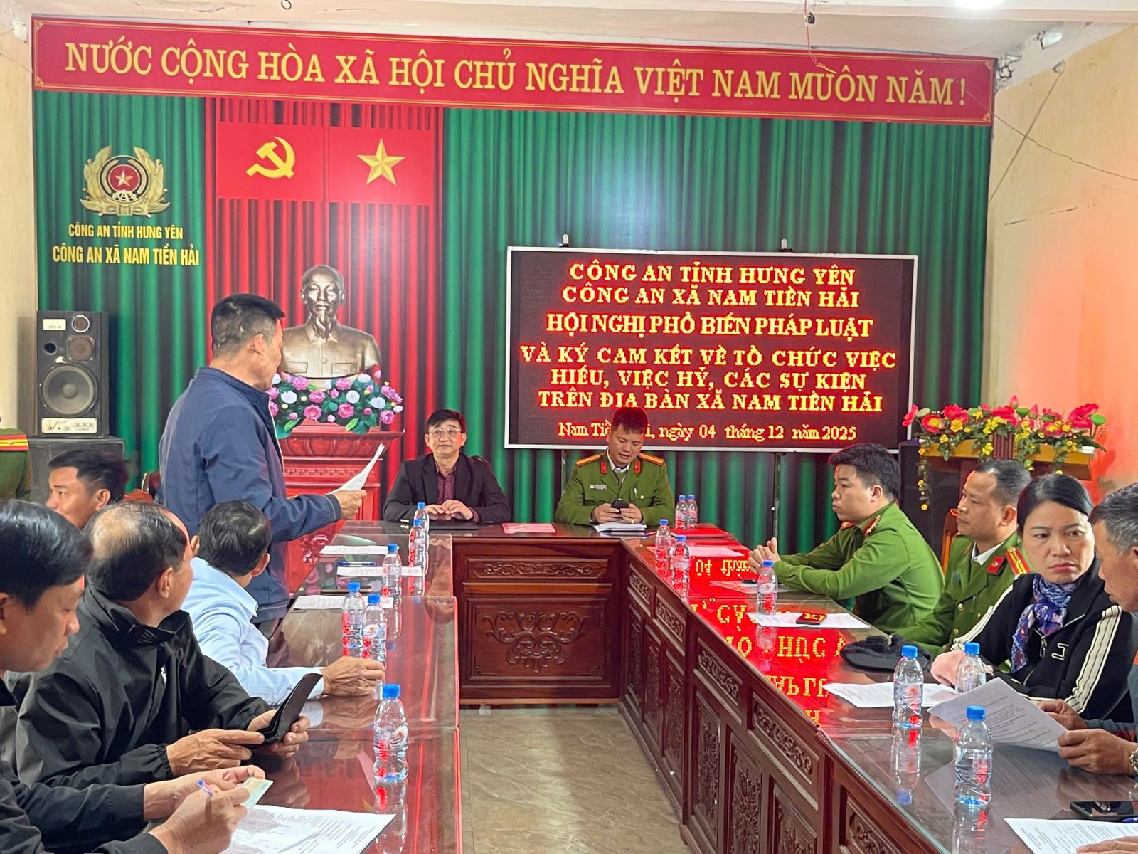 Công an xã Nam Tiền Hải tổ chức hội nghị phổ biến pháp luật và ký cam kết về việc tổ chức lễ hiếu, hỷ và các sự kiện cộng đồng trên địa bàn xã