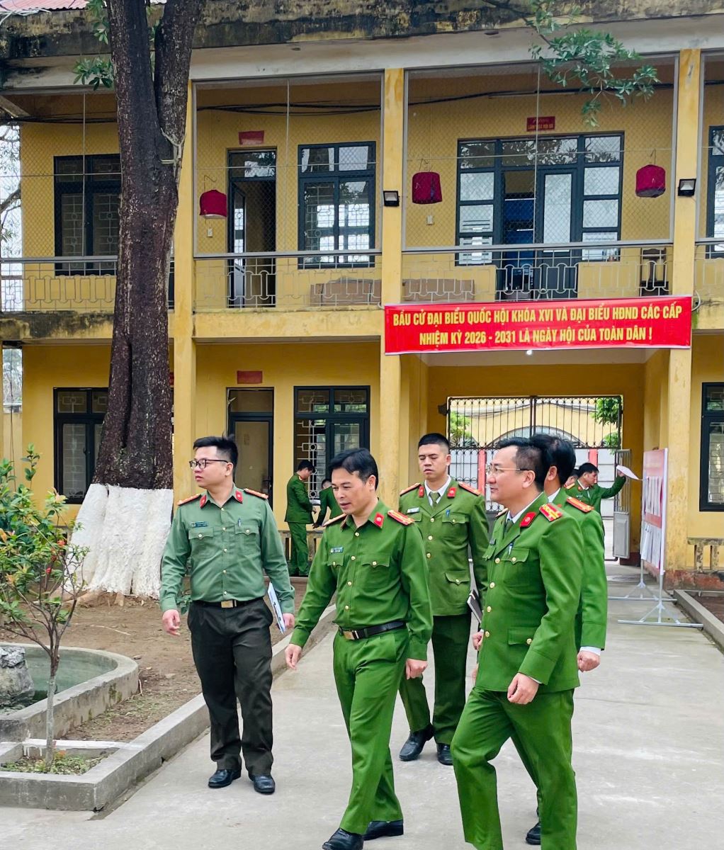Đồng chí Đại tá Nguyễn Thành Sơn, Phó Bí thư Đảng ủy, Phó Giám đốc Công an tỉnh kiểm tra công tác đảm bảo an ninh trật tự tại các điểm bầu cử một số xã trên địa bàn tỉnh