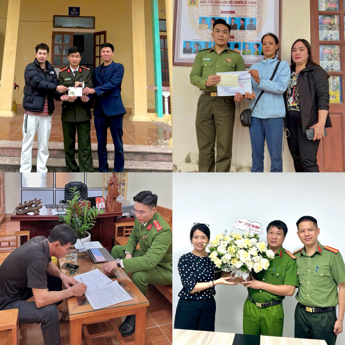 Bên cạnh đó, lực lượng Công an xã đã tích cực phối hợp rà soát, thu nhận 309 mẫu ADN của thân nhân liệt sĩ chưa xác định được danh tính theo chủ trương của Bộ Công an, thể hiện tinh thần trách nhiệm, tình cảm và sự tri ân sâu sắc đối với các gia đình liệt sĩ; góp phần làm dịu nỗi đau chiến tranh, đáp ứng nguyện vọng chính đáng của nhân dân. Trong quá trình công tác, Công an xã còn nhiều lần kịp thời hỗ trợ công dân tìm lại tài sản bị đánh rơi, hỗ trợ người dân nhận lại số tiền chuyển khoản nhầm, qua đó để lại hình ảnh đẹp, gần gũi trong lòng nhân dân.