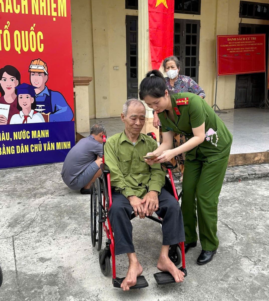 Cán bộ Công an phường hỗ trợ người dân mở tài khoản an sinh xã hội