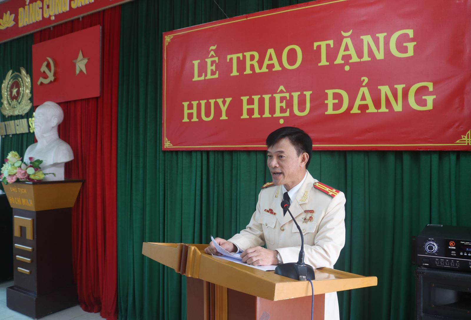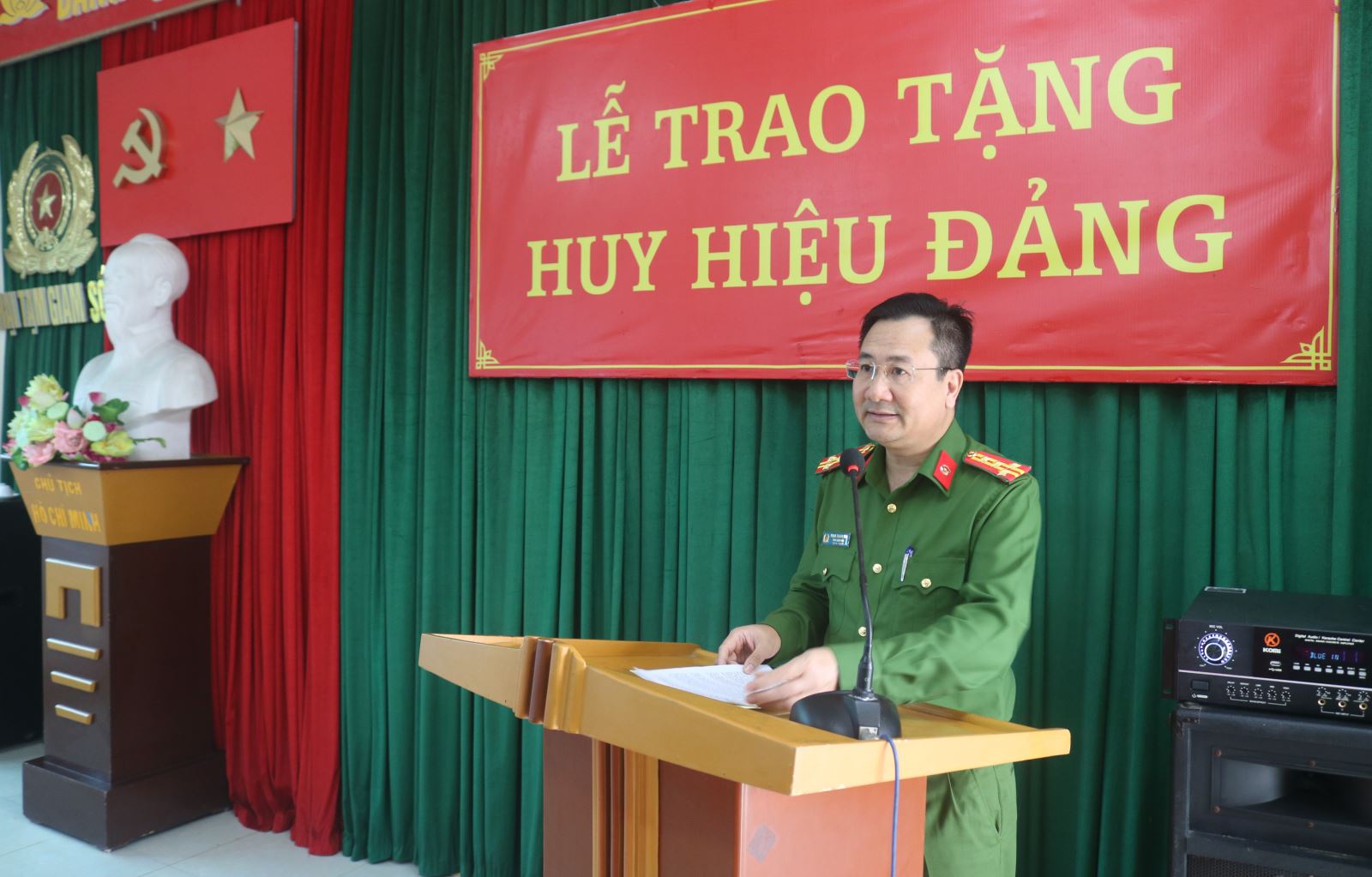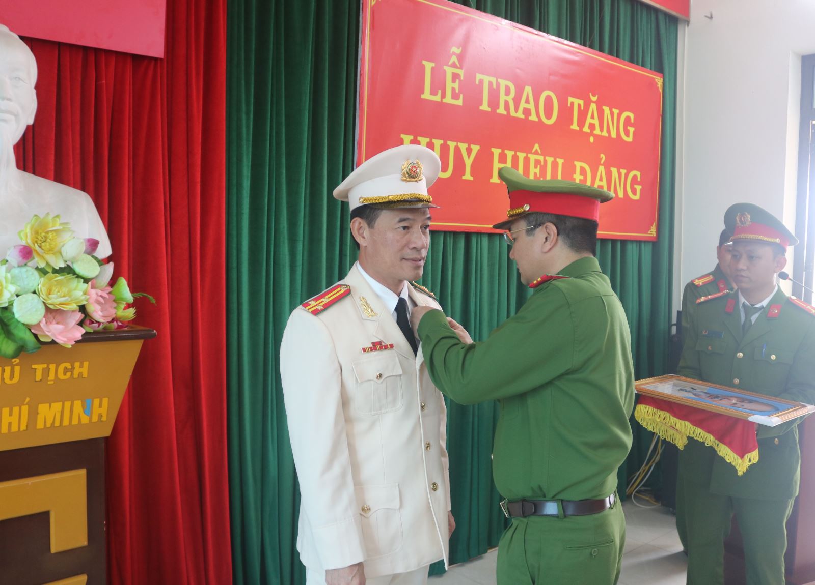 Đồng chí Phó Giám đốc Công an tỉnh trao quyết định và gắn Huy hiệu 30 năm tuổi Đảng cho đồng chí đảng viên