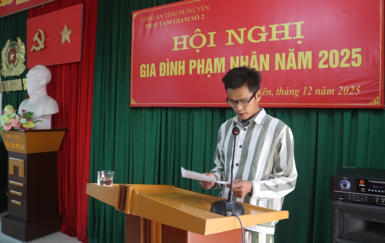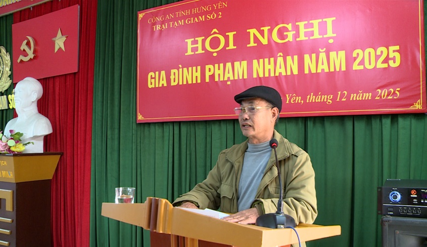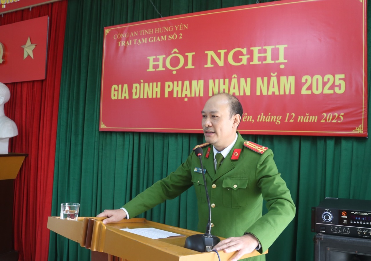 Thực hiện chương trình công tác năm 2025 của Trại tạm giam số 2 - Công an tỉnh, nhằm tăng cường hiệu quả công tác quản lý, giáo dục, cảm hóa phạm nhân, đồng thời phát huy vai trò, trách nhiệm của gia đình phạm nhân trong quá trình giáo dục, cải tạo, hoàn lương những người từng lầm lỗi, sáng ngày 28/12/2025 Trại tạm giam số 2 đã tổ chức thành công Hội nghị gia đình phạm nhân. Tham dự Hội nghị có các đồng chí Lãnh đạo đại diện phòng Cảnh sát thi hành án hình sự và hỗ trợ tư pháp, phòng Công tác chính trị Công an tỉnh Hưng Yên, tập thể Lãnh đạo Trại tạm giam số 2 cùng sự tham gia của đông đảo cán bộ, chiến sĩ, thân nhân và các phạm nhân đang chấp hành án tại Trại tạm giam số 2.