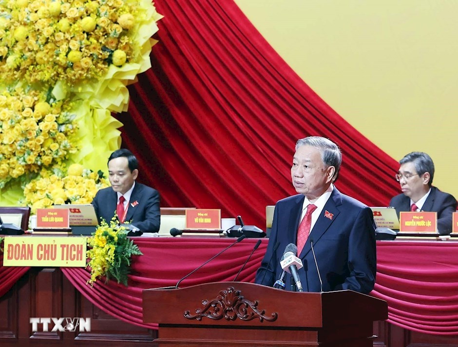 Đồng chí Tổng Bí thư Tô Lâm phát biểu tại Đại hội đại biểu Đảng bộ Thành phố Hồ Chí Minh ngày 14/10/2025. (Ảnh: TTXVN)