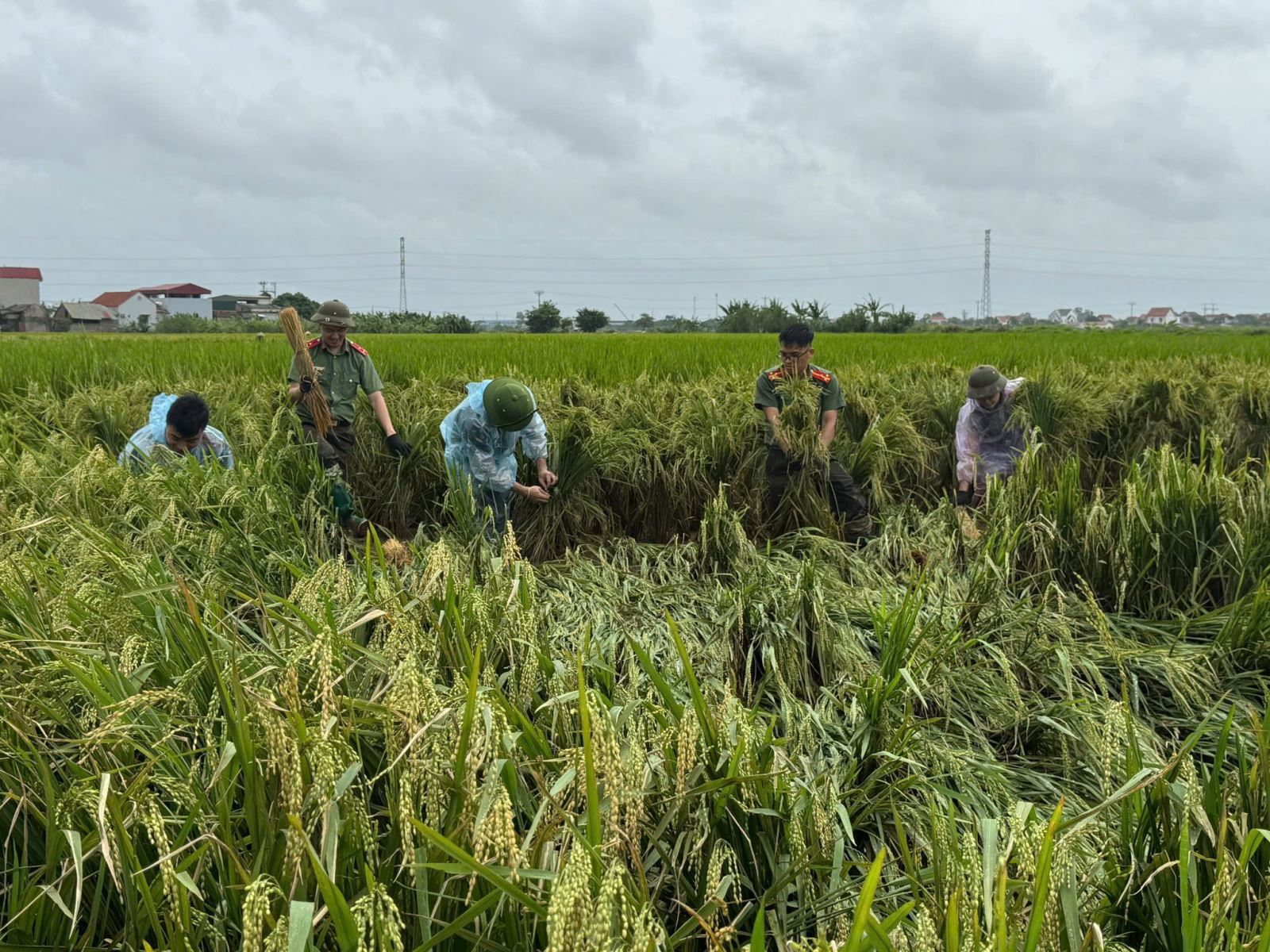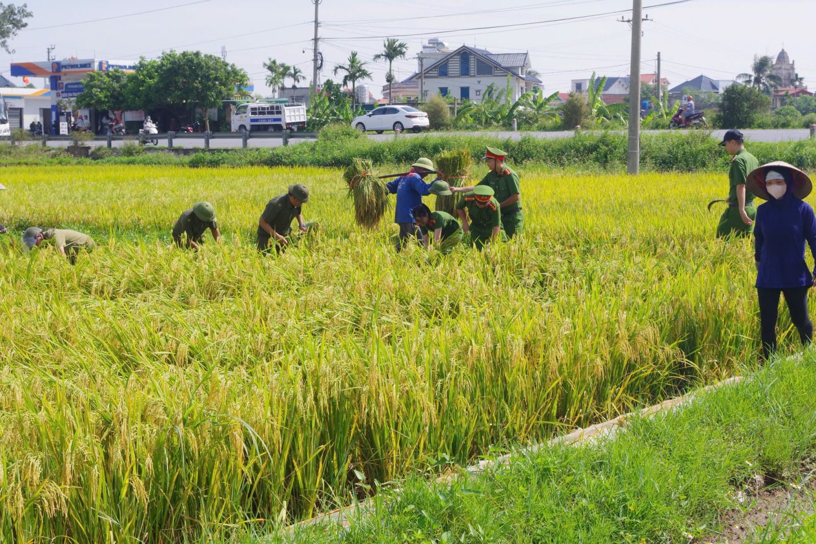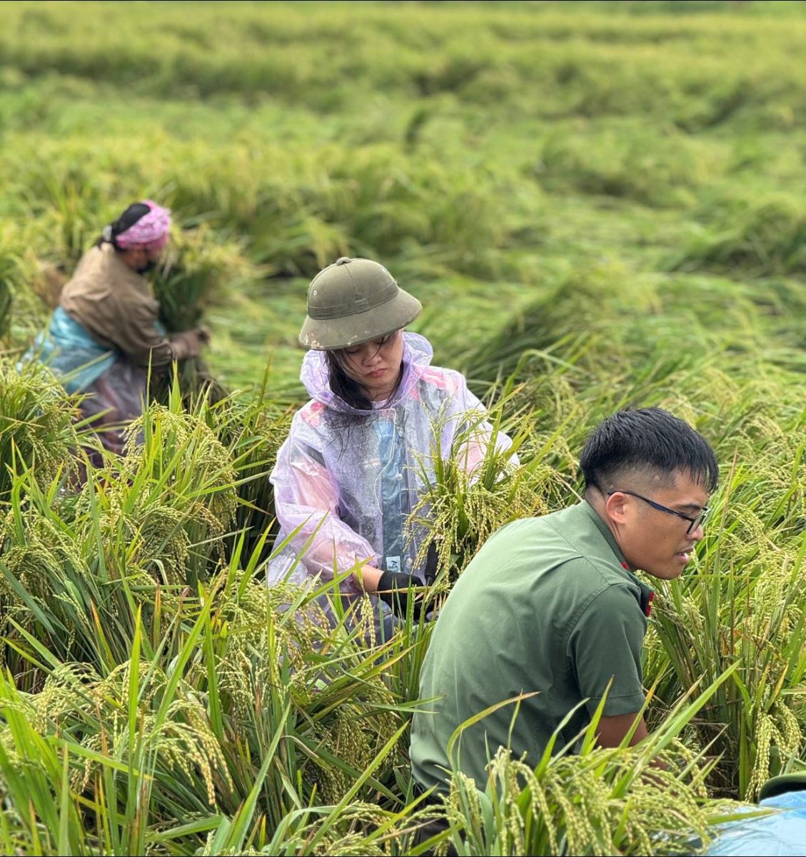 Chi đoàn Công an xã Thái Ninh giúp người dân thu hoạch lúa trước khi cơn bão số 11 đổ bộ