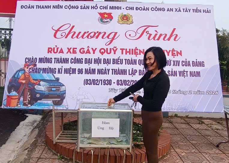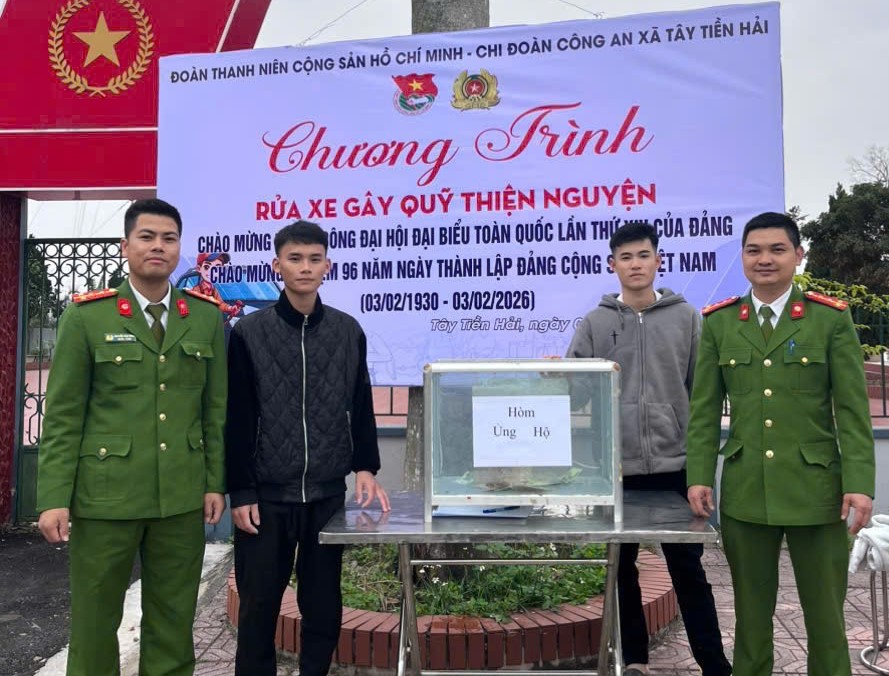 Hòa chung không khí thi đua sôi nổi lập thành tích chào mừng Đảng quang vinh, mừng Xuân mới và hướng tới kỷ niệm Ngày thành lập Đoàn Thanh niên Cộng sản Hồ Chí Minh, Chi đoàn Công an xã Tây Tiền Hải đã tổ chức hoạt động “Rửa xe gây quỹ thiện nguyện” nhằm chăm lo, hỗ trợ các gia đình có hoàn cảnh khó khăn trên địa bàn dịp Tết Nguyên đán Bính Ngọ 2026.