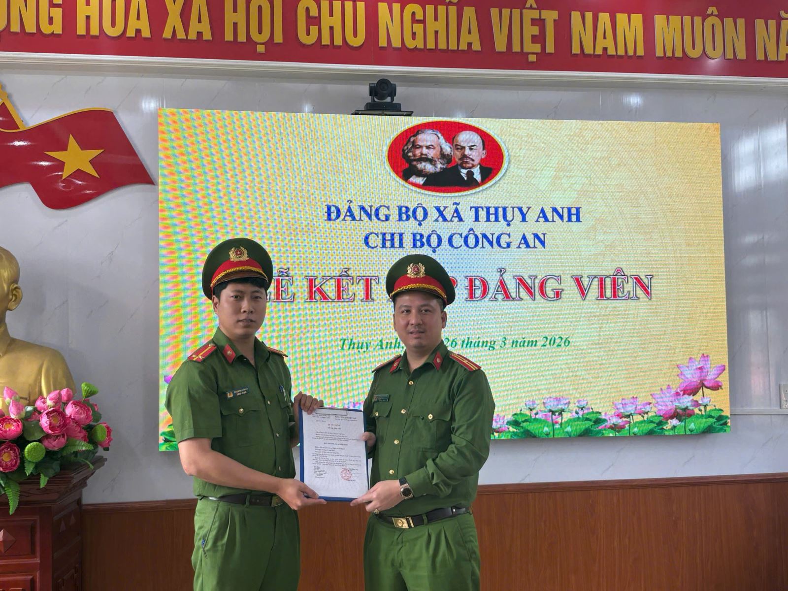 Điểm nhấn ý nghĩa nhất trong chuỗi hoạt động chính là Lễ kết nạp Đảng viên mới cho đồng chí Phạm Duy Thao. Thực hiện chỉ đạo của Chi bộ Công an xã, Chi đoàn đã tổ chức Lễ kết nạp Đảng viên mới cho đồng chí Phạm Duy Thao, buổi lễ được tổ chức trang trọng, đúng quy định ngay trong ngày kỷ niệm thành lập Đoàn.