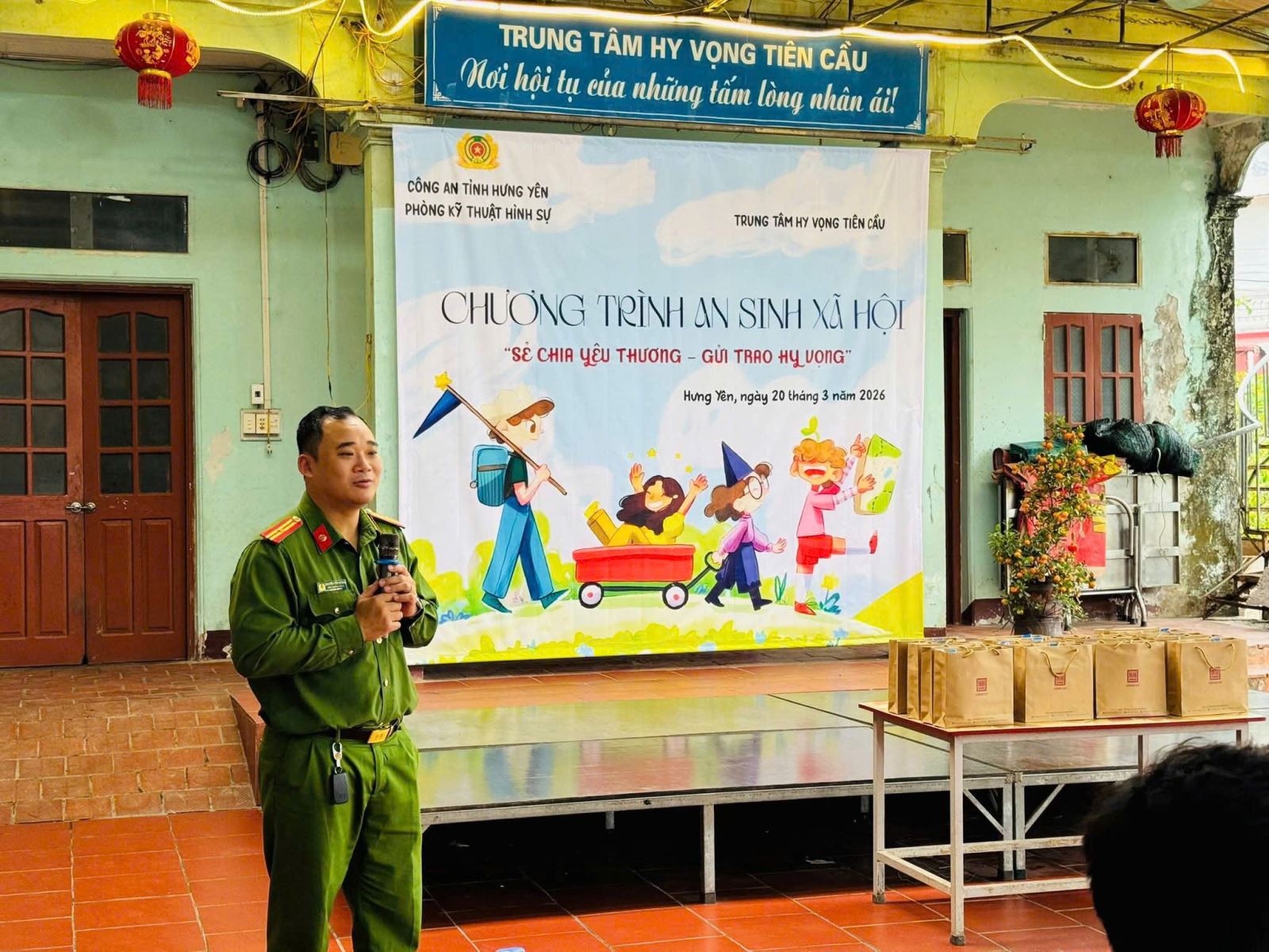 Phát biểu tại chương trình, ông Nguyễn Trung Chắt – Giám đốc Trung tâm Hy Vọng Tiên Cầu bày tỏ sự xúc động trước tình cảm của đoàn viên, thanh niên Phòng Kỹ thuật hình sự dành cho các em nhỏ, đồng thời nhấn mạnh: “Những phần quà và sự quan tâm của các đồng chí không chỉ hỗ trợ về vật chất mà còn là nguồn động viên tinh thần rất lớn, giúp các cháu thêm tự tin, lạc quan và có thêm động lực vươn lên trong cuộc sống”.