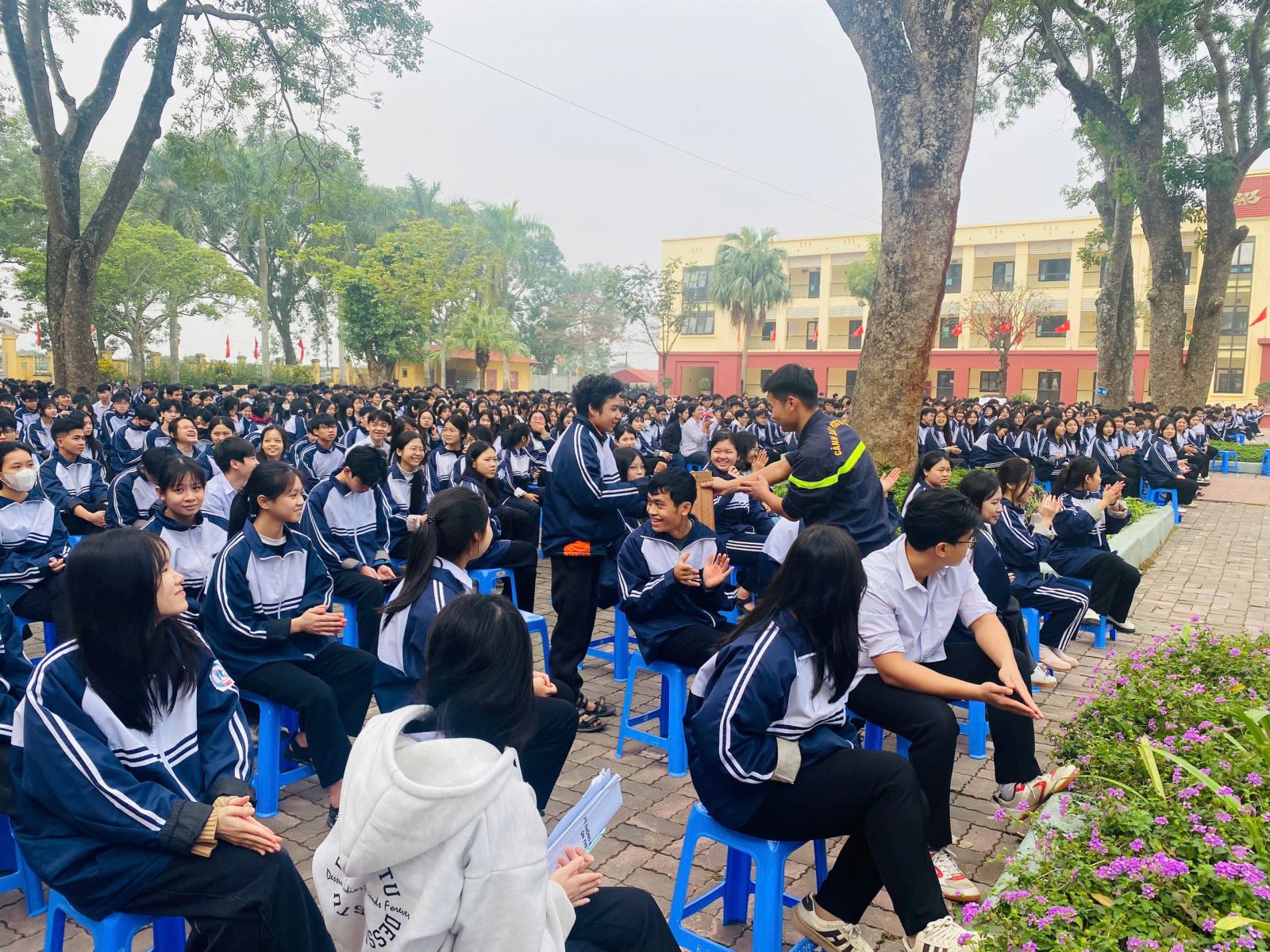 Tham dự Chương trình, có đồng chí Nguyễn Thị Quyên - Chủ tịch UBMTTQ xã, Nguyễn Thị Phương Anh - Phó Chủ tịch UBMTTQ, Bí thư Đoàn Thanh niên xã Quang Hưng, đồng chí Trần Hoàng Quân - Phó Trưởng Ban Thanh niên Công an tỉnh, các đồng chí cán bộ, giáo viên, đoàn viên thanh niên và gần 1.400 học sinh.