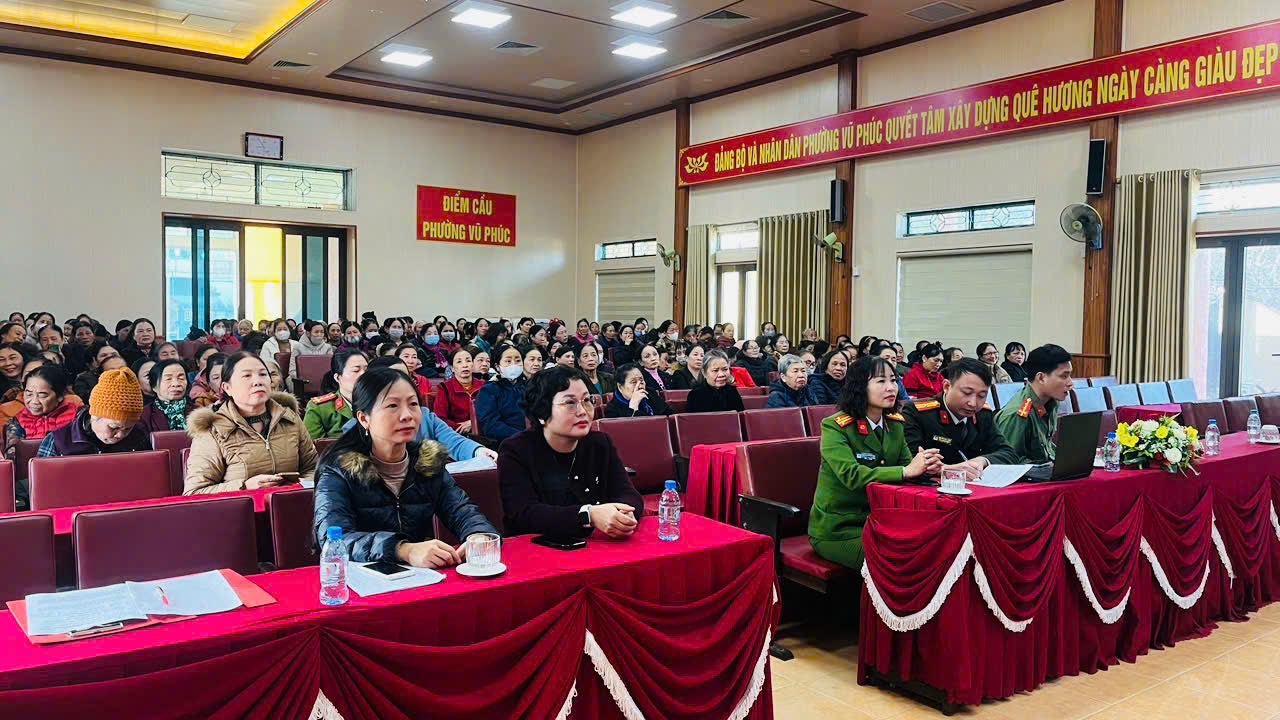 Nhằm tổ chức các hoạt động tuyên truyền cho người dân trên địa bàn tỉnh nắm được các quy định của pháp luật về an ninh mạng và cảnh báo các phương thức, thủ đoạn lừa đảo trên không gian mạng, sáng ngày 28/12/2025 Phòng An ninh mạng và phòng, chống tội phạm sử dụng công nghệ cao phối hợp với Đảng ủy Phường Vũ Phúc (TDP Quý Sơn, Phường Vũ Phúc, tỉnh Hưng Yên) tổ chức chương trình tuyên truyền Luật An ninh mạng và phòng, chống tội phạm sử dụng công nghệ cao trên không gian mạng cho hơn 230 hội viên Hội liên hiệp phụ nữ của phường.