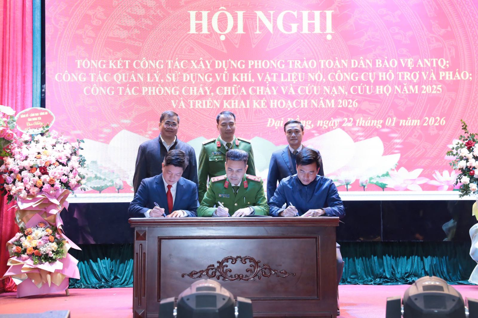 Với sự chứng kiến của đồng chí Đại tá Vũ Trung Thành - Phó Giám đốc Công an tỉnh; đồng chí Nguyễn Hoàng Linh - Bí thư Đảng ủy, Chủ tịch HĐND xã và đồng chí Tôn Ngọc Chuẩn - Phó Bí thưu Đảng ủy, Chủ tịch UBND xã, tại Hội nghị đã triển khai ký chương trình phối hợp giữa Công an xã và Ủy ban Mặt trận Tổ quốc Việt Nam xã cũng như cam kết thực hiện phong trào toàn dân bảo vệ ANTQ năm 2026.