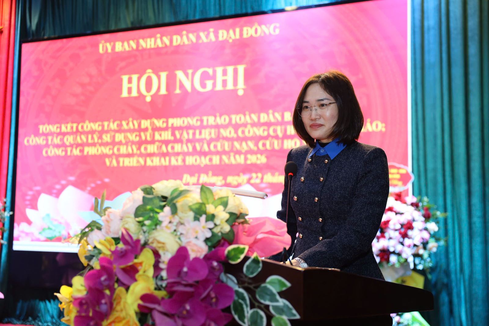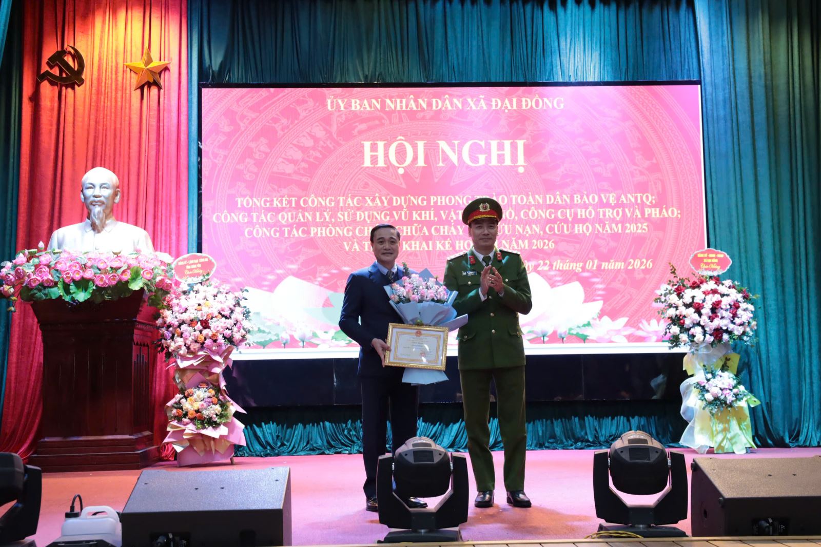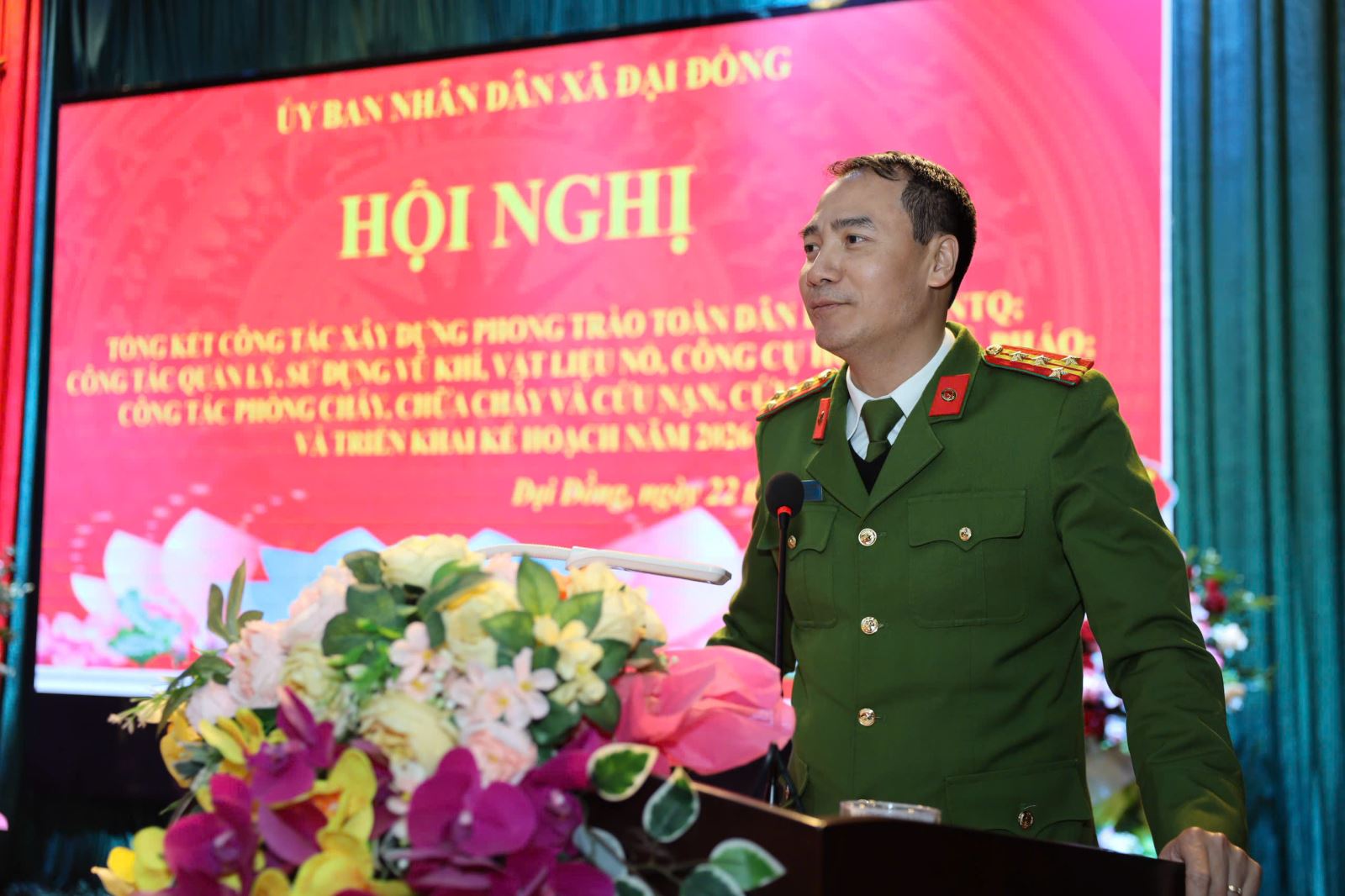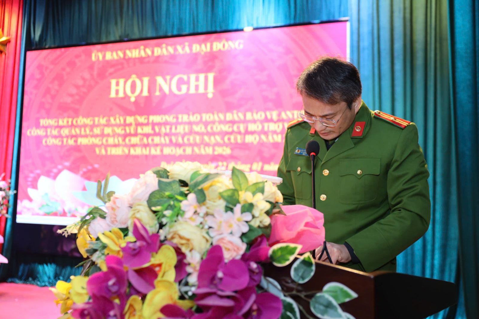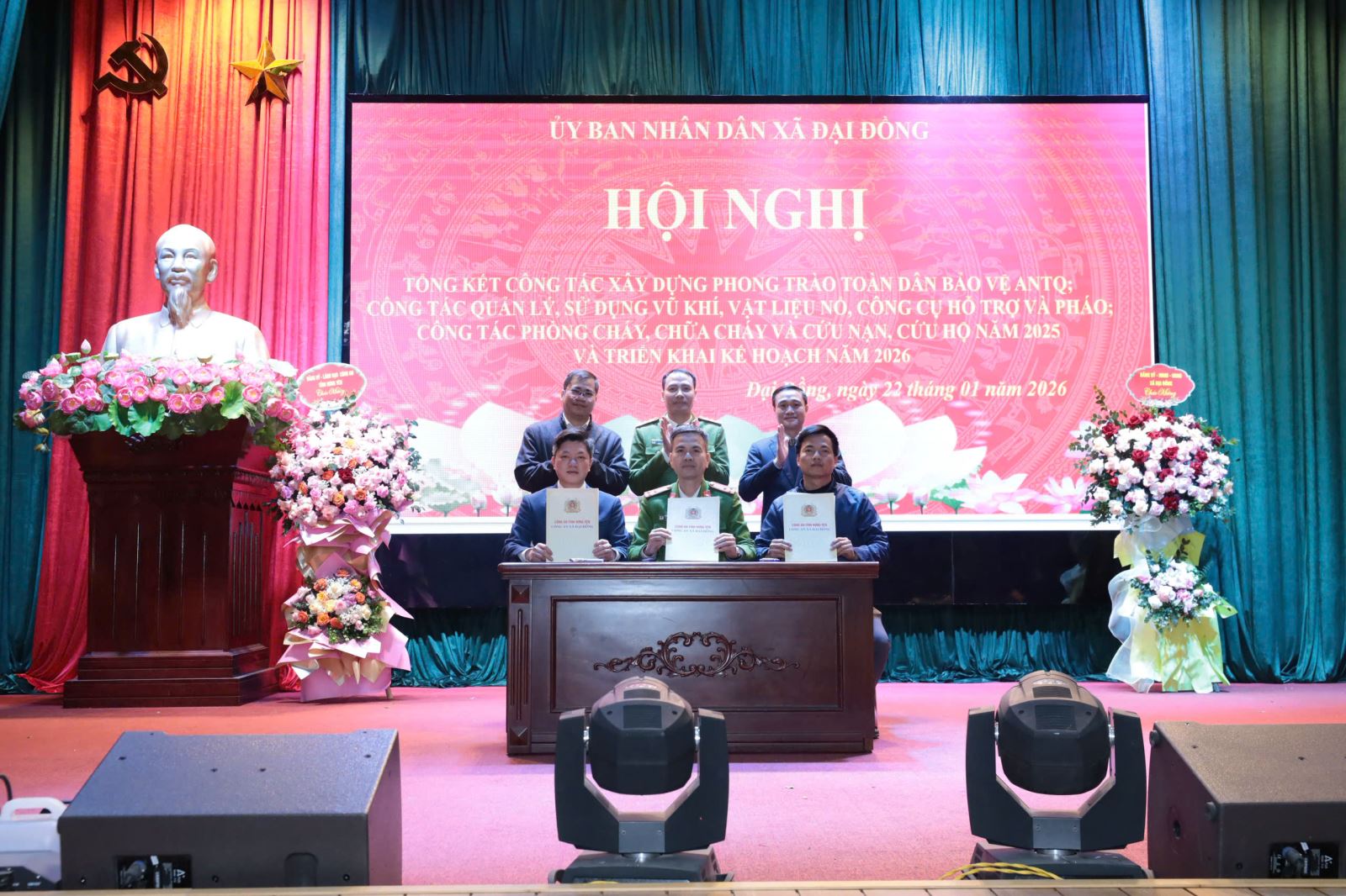 Chiều ngày 22/01/2026, Xã Đại Đồng tổ chức Hội nghị tổng kết phong trào “Toàn dân bảo vệ an ninh Tổ quốc”; công tác quản lý, sử dụng vũ khí, vật liệu nổ, công cụ hỗ trợ và pháo; công tác phòng cháy chữa cháy và cứu nạn cứu hộ năm 2025; triển khai phương hướng, nhiệm vụ năm 2026.