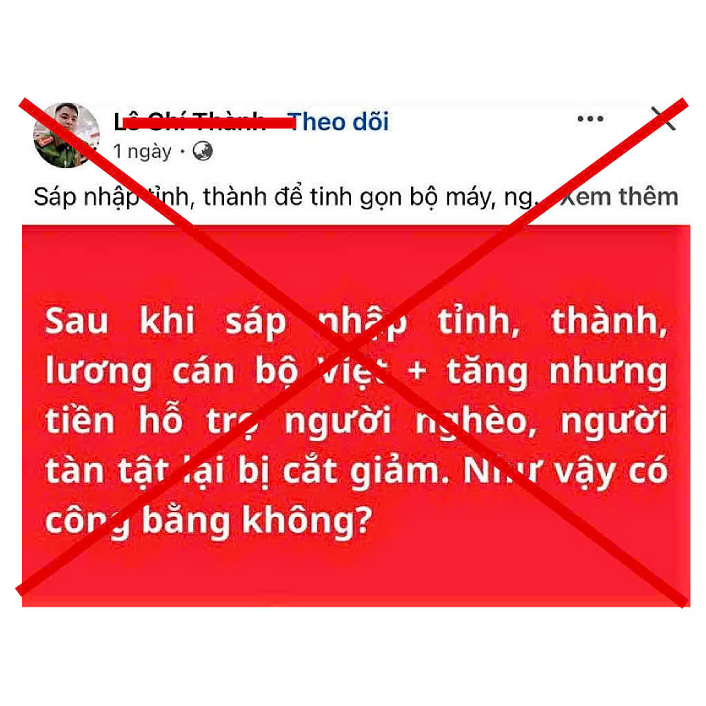Thời gian gần đây, lợi dụng chủ trương sắp xếp, sáp nhập đơn vị hành chính nhằm tinh gọn bộ máy, nâng cao hiệu lực, hiệu quả quản lý Nhà nước, đối tượng Lê Chí Thành đã tung ra những phát ngôn mang tính suy diễn, quy chụp và kích động, cố tình đối lập lợi ích giữa Nhà nước với người nghèo, người yếu thế trong xã hội. Những luận điệu này không chỉ sai lệch về bản chất chính sách mà còn thể hiện rõ ý đồ xuyên tạc, gây hoài nghi trong dư luận.