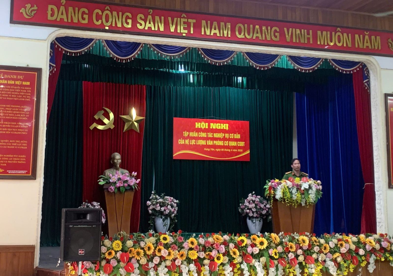 Thực hiện Kế hoạch của Giám đốc Công an tỉnh Hưng Yên về tập huấn công tác nghiệp vụ cơ bản của lực lượng Cảnh sát nhân dân năm 2026, ngày 06/4/2026, Văn phòng Cơ quan Cảnh sát điều tra Công an tỉnh Hưng Yên đã tổ chức Hội nghị phổ biến, quán triệt những điểm mới trong công tác nghiệp vụ cơ bản nhằm triển khai thực hiện nghiêm túc, thống nhất và hiệu quả trong toàn đơn vị.