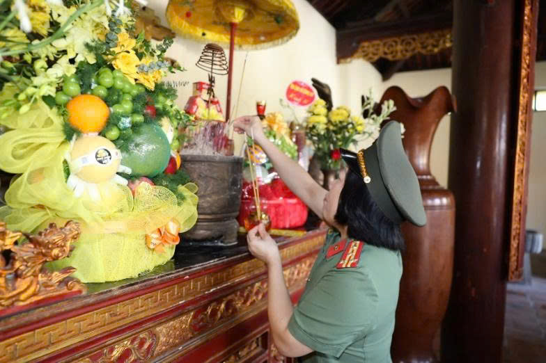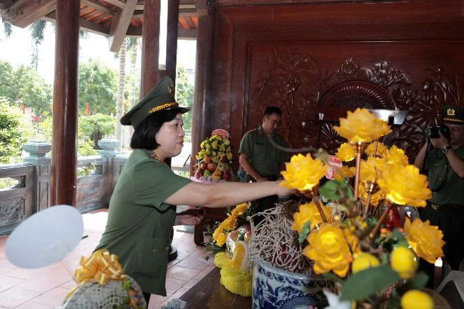 Đoàn công tác tổ chức Lễ dâng hương tưởng niệm Anh hùng liệt sĩ CAND Bùi Thị Cúc trong khuôn viện Trụ sở Công an tỉnh Hưng Yên