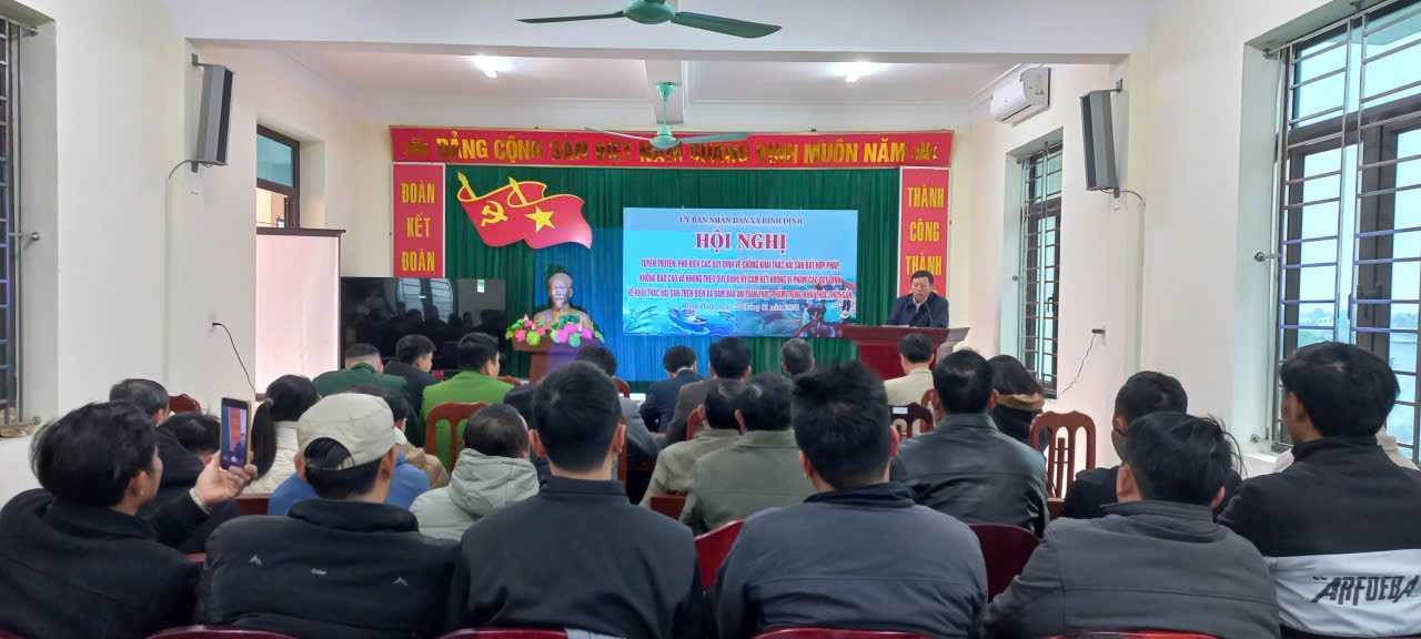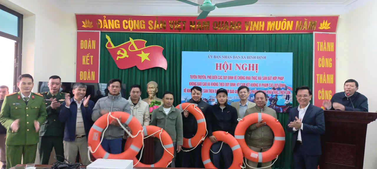 Thực hiện chỉ đạo của UBND các cấp về việc tăng cường công tác quản lý, bảo vệ nguồn lợi thủy sản và chống khai thác bất hợp pháp, không báo cáo và không theo quy định (IUU). Chiều ngày 23/01/2026, Công an xã Bình Định đã tham mưu cho UBND xã tổ chức Hội nghị tuyên truyền, phổ biến pháp luật, kết hợp trao tặng trang thiết bị an toàn và ký cam kết với các hộ dân làm nghề chài lưới trên địa bàn.