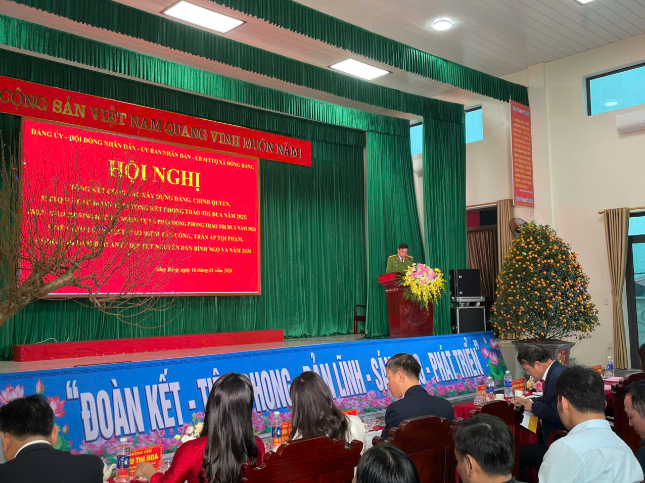 Thực hiện Kế hoạch số 01/KH-BCĐ ngày 02/01/2026 của Ban Chỉ đạo thực hiện Luật số 42/2024/QH15 về quản lý, sử dụng vũ khí, vật liệu nổ, công cụ hỗ trợ; Nghị định số 137/2020/NĐ-CP về quản lý, sử dụng pháo những tháng cuối năm và Tết Nguyên đán, sáng ngày 23/01/2026, Đảng ủy - HĐND - UBND xã Đồng Bằng tổ chức hội nghị tổng kết công tác thực hiện và triển khai phương án đảm bảo an ninh trật tự trước, trong và sau Tết Nguyên đán Bính Ngọ năm 2026.