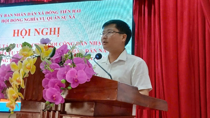 Đồng chí Trần Văn Linh - Phó bí thư Đảng ủy, Chủ tịch UBND xã, Chủ tịch HĐNV Quân sự xã phát biểu: Ghi nhận và đánh giá cao tinh thần trách nhiệm của các ban ngành đoàn thể xã, đặc biệt là lực lượng Công an xã, ban chỉ huy Quân sự xã đã chủ động tham mưu, phối hợp tổ chức thực hiện nhiệm vụ đạt chỉ tiêu giao quân năm 2026. Đồng chí yêu cầu trong thời gian tới cần thực hiện nghiêm sự chỉ đạo định hướng của Đảng ủy cấp trên, sự vào cuộc của các ban ngành đoàn thể và đặc biệt là việc nêu cao tinh thần trách nhiệm của ban công tác mặt trận tại các thôn; Đẩy mạnh công tác tuyên truyền giáo dục công dân trong độ tuổi sẵn sàng lên đường nhập ngũ; Nắm tình hình và quản lý nguồn chặt chẽ từ cơ sở; Quan tâm thực hiện tốt chính sách hậu phương...