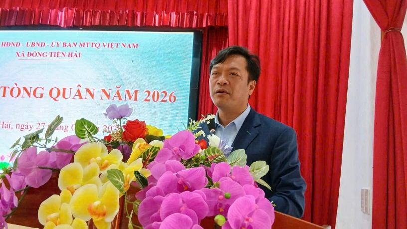 Đồng chí Nguyễn Minh Hòa – Bí thư Đảng ủy, chủ tịch HĐND xã nhấn mạnh: Thanh niên xã Đông Tiền Hải hăng hái tình nguyện lên đường nhập ngũ để bảo vệ tổ quốc. Đây là niềm vinh dự, tự hào, vừa là trách nhiệm thiêng liêng của tuổi trẻ đối với quê hương, đất nước. Cấp ủy Đảng, chính quyền luôn quan tâm, thực hiện tốt chính sách hậu phương, tạo điều kiện, động viên, hỗ trợ gia đình có công dân nhập ngũ yên tâm để con em mình hoàn thành xuất sắc nhiệm vụ được giao. Đồng chí cũng gửi lời chúc các đồng chí tân binh mạnh khỏe, vững vàng, phát huy truyền thống quê hương anh hùng, xứng đáng với niềm tin yêu của Đảng bộ, chính quyền và nhân dân địa phương.