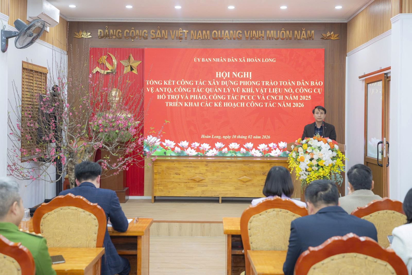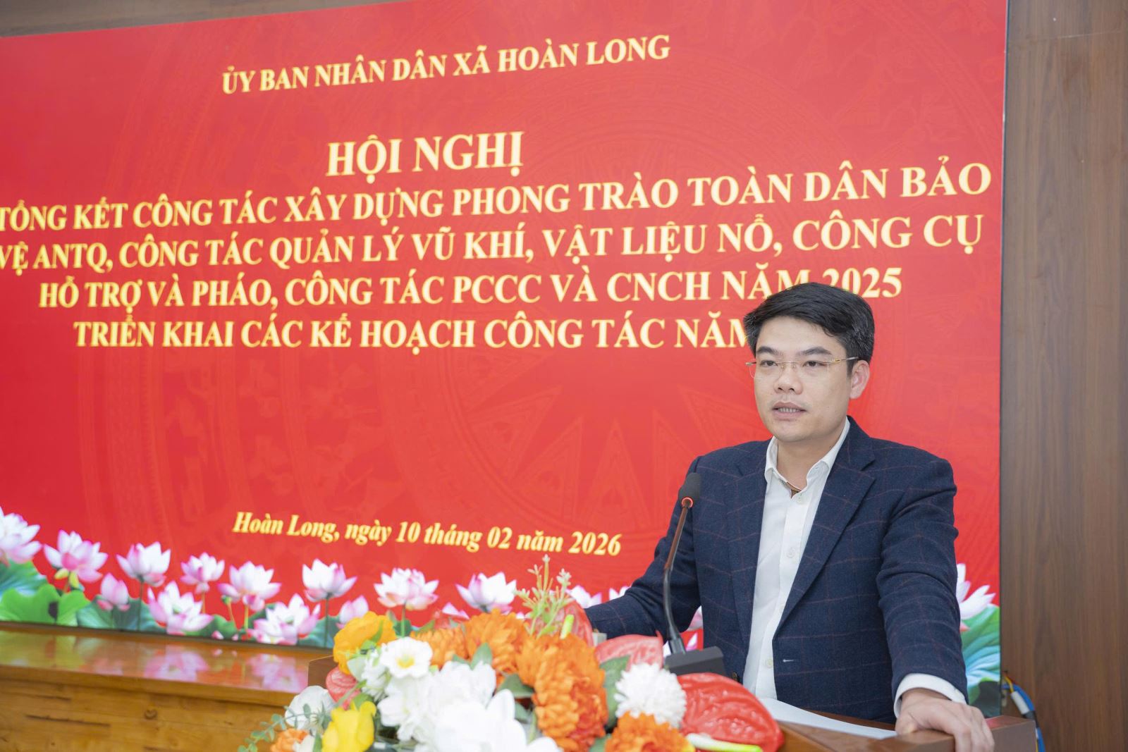 Chiều 10/02/2026, Công an xã Hoàn Long tham mưu UBND xã Hoàn Long tổ chức Hội nghị tổng kết 03 chuyên đề, đồng thời triển khai nhiệm vụ, kế hoạch công tác năm 2026. Đồng chí Vũ Văn Quảng, Phó Bí thư Đảng ủy, Chủ tịch UBND xã dự và chủ trì hội nghị.