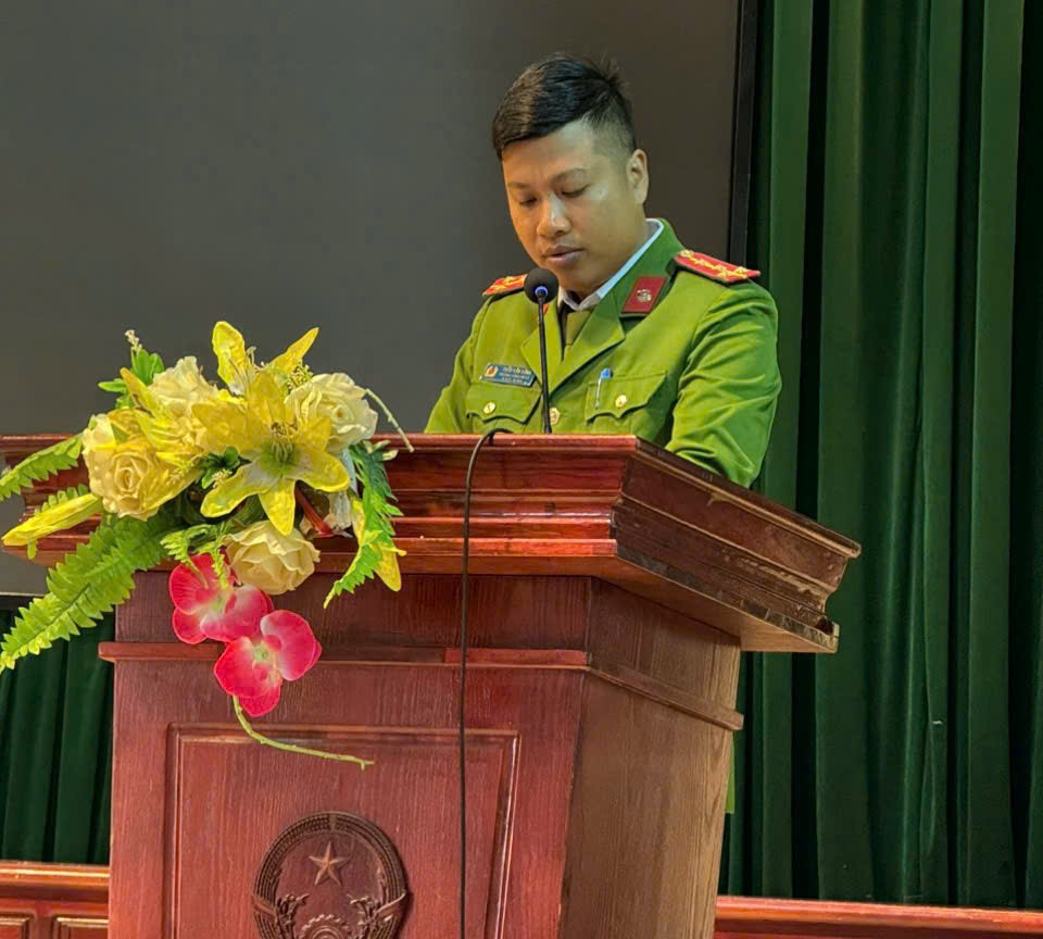 Đồng chí Đại úy Trần Văn Vững – Trưởng Công an xã triển khai phương án bảo đảm ANTT cuộc bầu cử