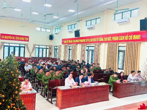 Dự hội nghị có đồng chí Nguyễn Thanh Bình – Bí thư Đảng ủy, Chủ tịch HĐND xã; đồng chí Nguyễn Việt Hùng – Phó Bí thư Đảng ủy, Chủ tịch UBND xã; các đồng chí trong Ban Thường vụ Đảng ủy; lãnh đạo các phòng, ban chuyên môn của xã. Cùng dự có chỉ huy, cán bộ, chiến sĩ Công an xã Nguyễn Du; trưởng các thôn; thành viên Tổ an ninh, trật tự ở cơ sở và các tập thể, cá nhân tiêu biểu trong phong trào toàn dân bảo vệ an ninh Tổ quốc.