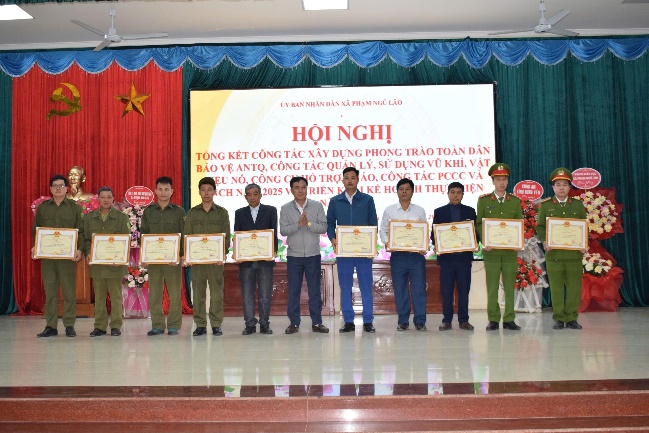 Cũng tại hội nghị, nhằm ghi nhận và biểu dương những đóng góp tích cực trong phong trào toàn dân bảo vệ an ninh Tổ quốc năm 2025, Ủy ban nhân dân xã Phạm Ngũ Lão đã quyết định khen thưởng cho 5 tập thể và 10 cá nhân có thành tích tiêu biểu trong công tác giữ gìn an ninh, trật tự, phòng chống tội phạm và xây dựng phong trào quần chúng bảo vệ an ninh Tổ quốc. Việc khen thưởng kịp thời đã góp phần động viên, khích lệ các tập thể, cá nhân tiếp tục phát huy tinh thần trách nhiệm, nêu cao vai trò nòng cốt, lan tỏa những cách làm hay, mô hình hiệu quả trong quần chúng Nhân dân.