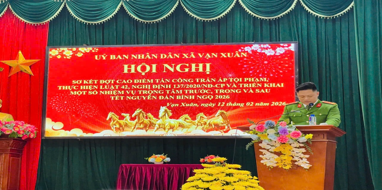 Tại Hội nghị, đồng chí Đại uý Lương Quang Tiến –Trưởng Công an xã, đã báo cáo kết quả 14 ngày thực hiện công tác đảm bảo ANTT và công tác vũ khí, vật liệu nổ, công cụ hỗ trợ và pháo. Trong đó, Công an xã đã đạt được một số kết quả nổi bật như: vận động thu hồi 1,5kg pháo nổ, 1,8kg tiền chất nổ, 03 mét dây cháy chậm, 15 vũ khí thô sơ và 10 viên đạn quân dụng.